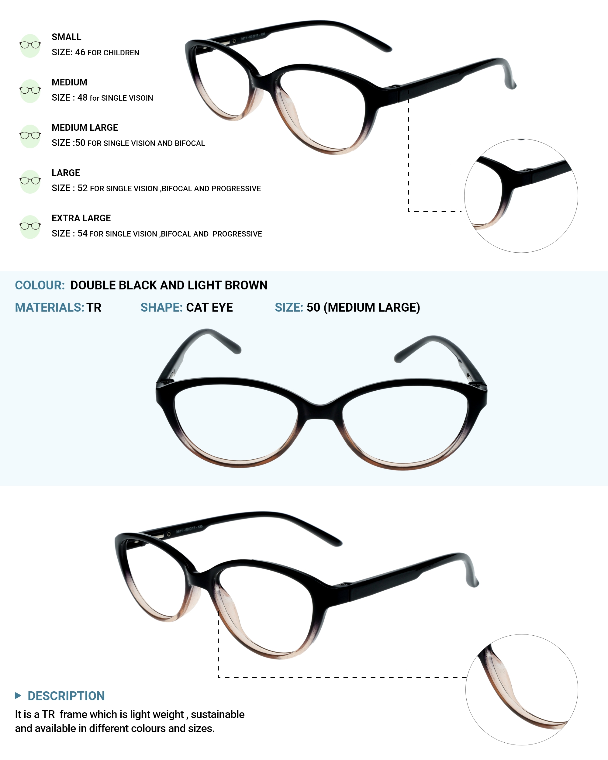 LENS PLUS AIRS CATEYE EYE FRAME DOUBLE BLACK AND LIGHT BROWN