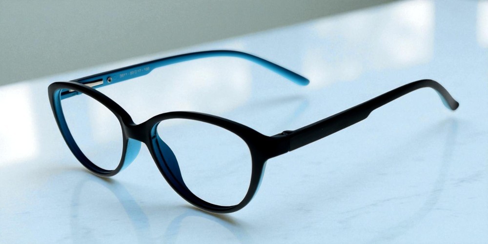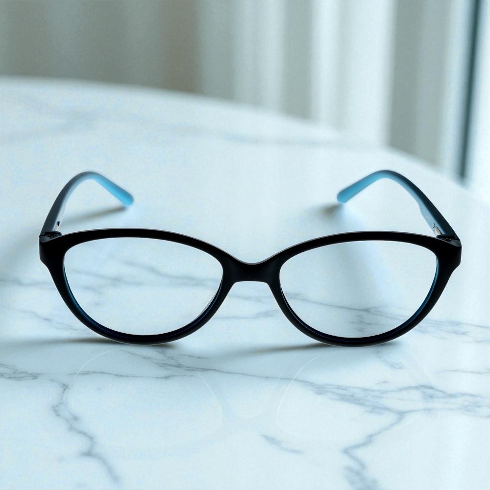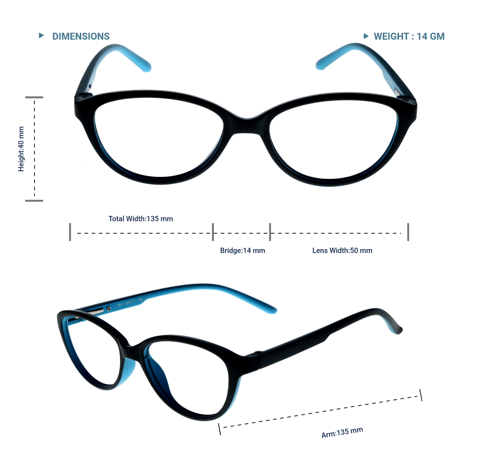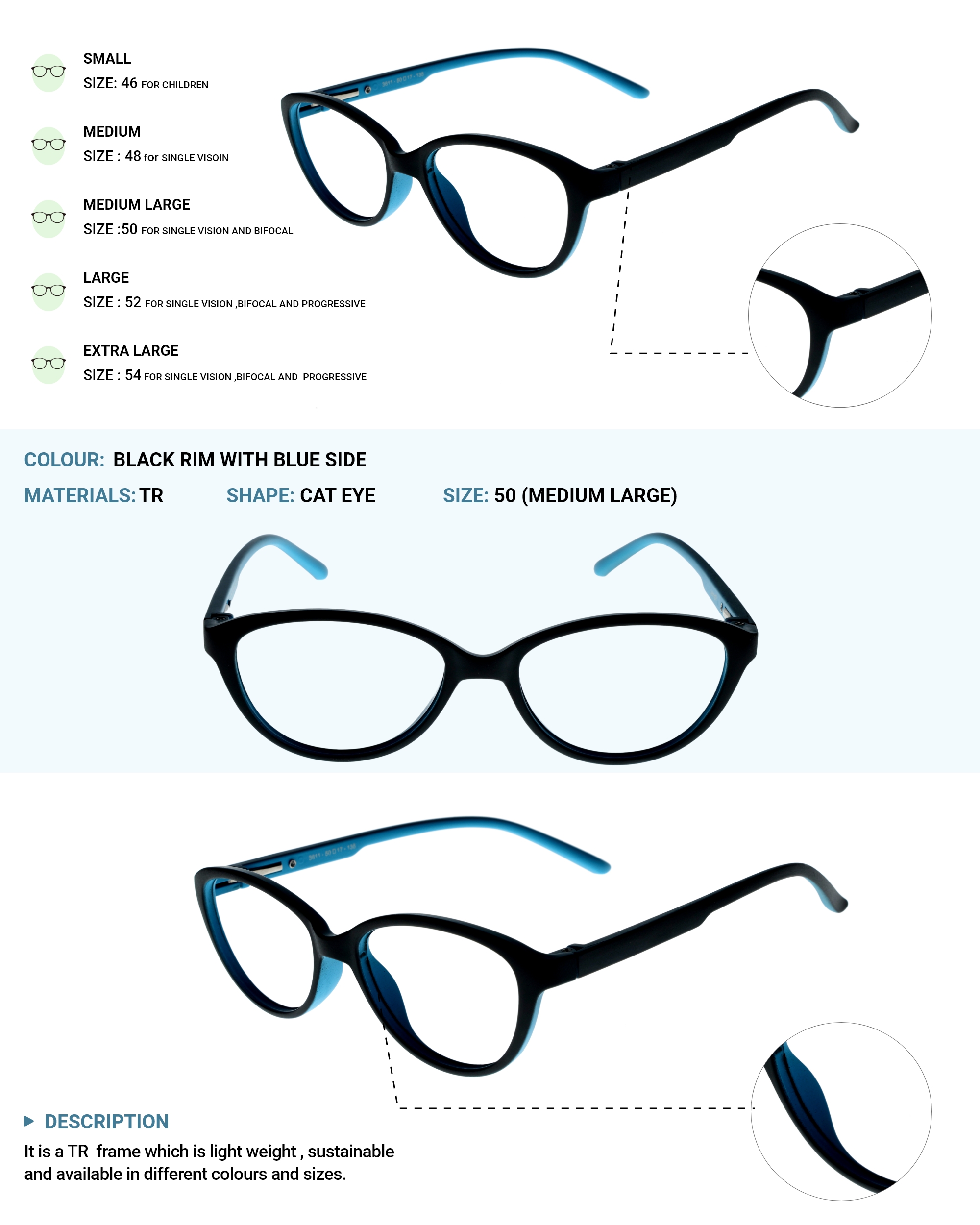 LENS PLUS AIRS CATEYE EYE FRAME BLACK RIM WITH BLUE INSIDE