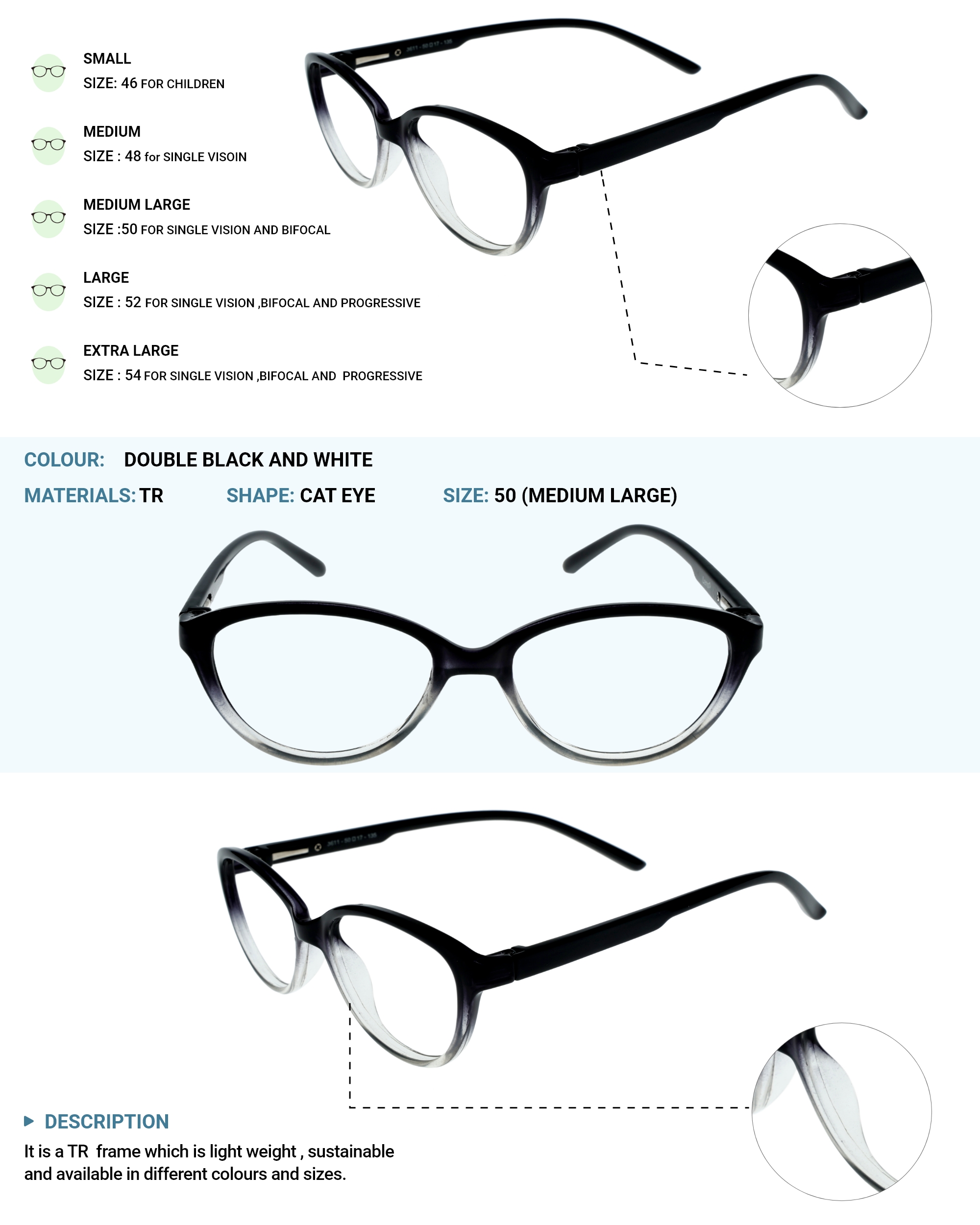 LENS PLUS AIRS CATEYE EYE FRAME DOUBLE BLACK AND WHITE