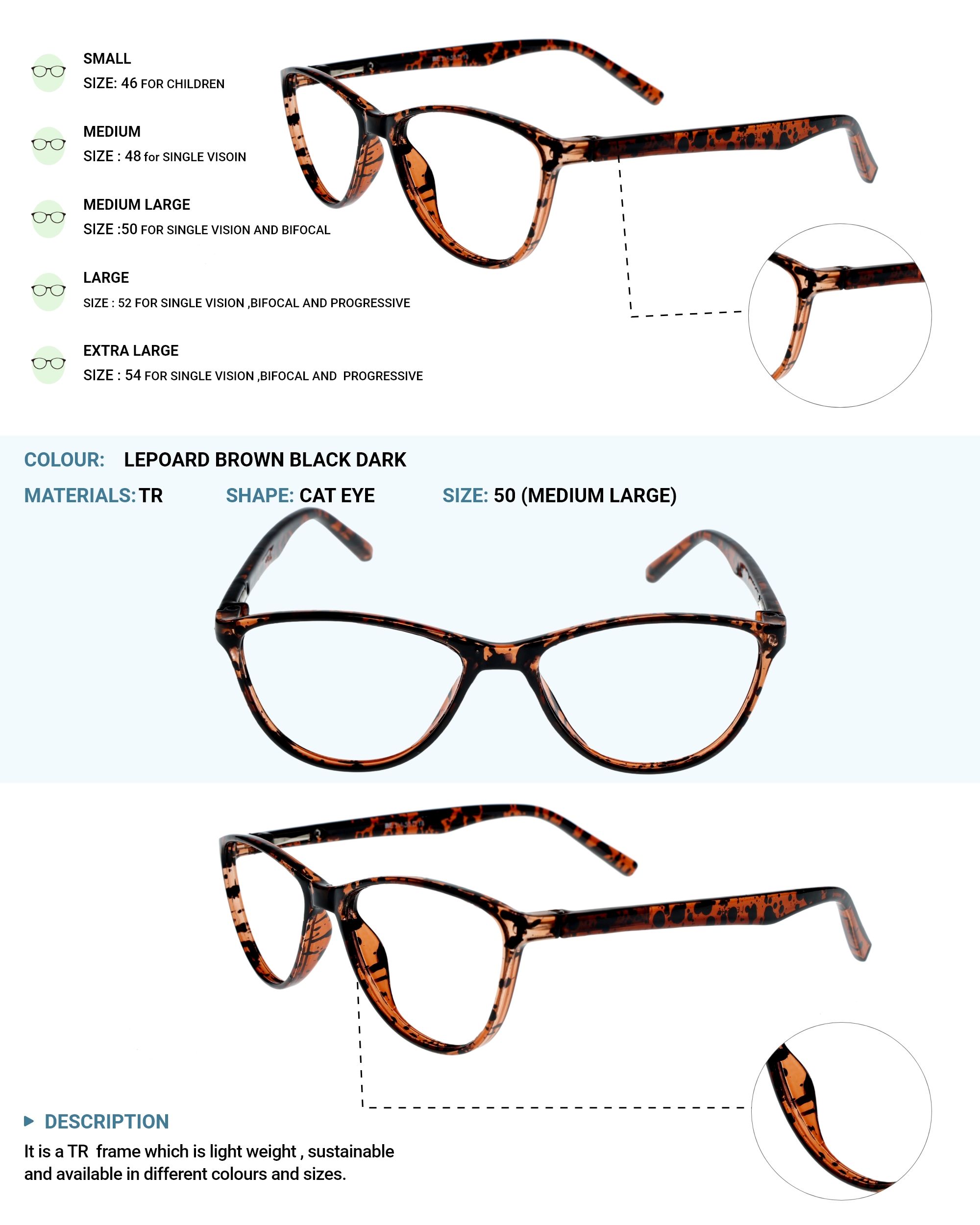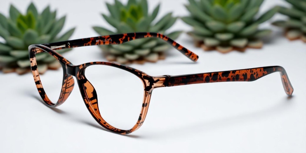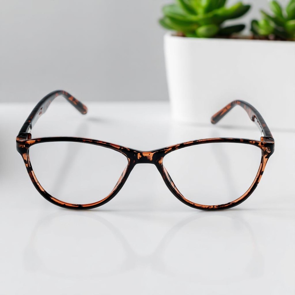 LENS PLUS AIRS PLUS CATEYE EYE FRAME LEPORD BROWN BLACK DARK