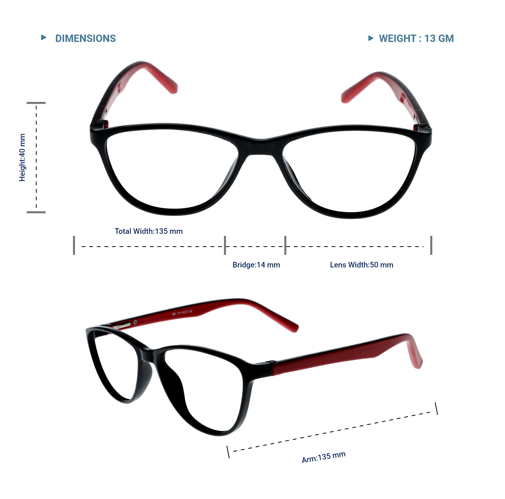 LENS PLUS AIRS PLUS CATEYE EYE FRAME BLACK AND RED