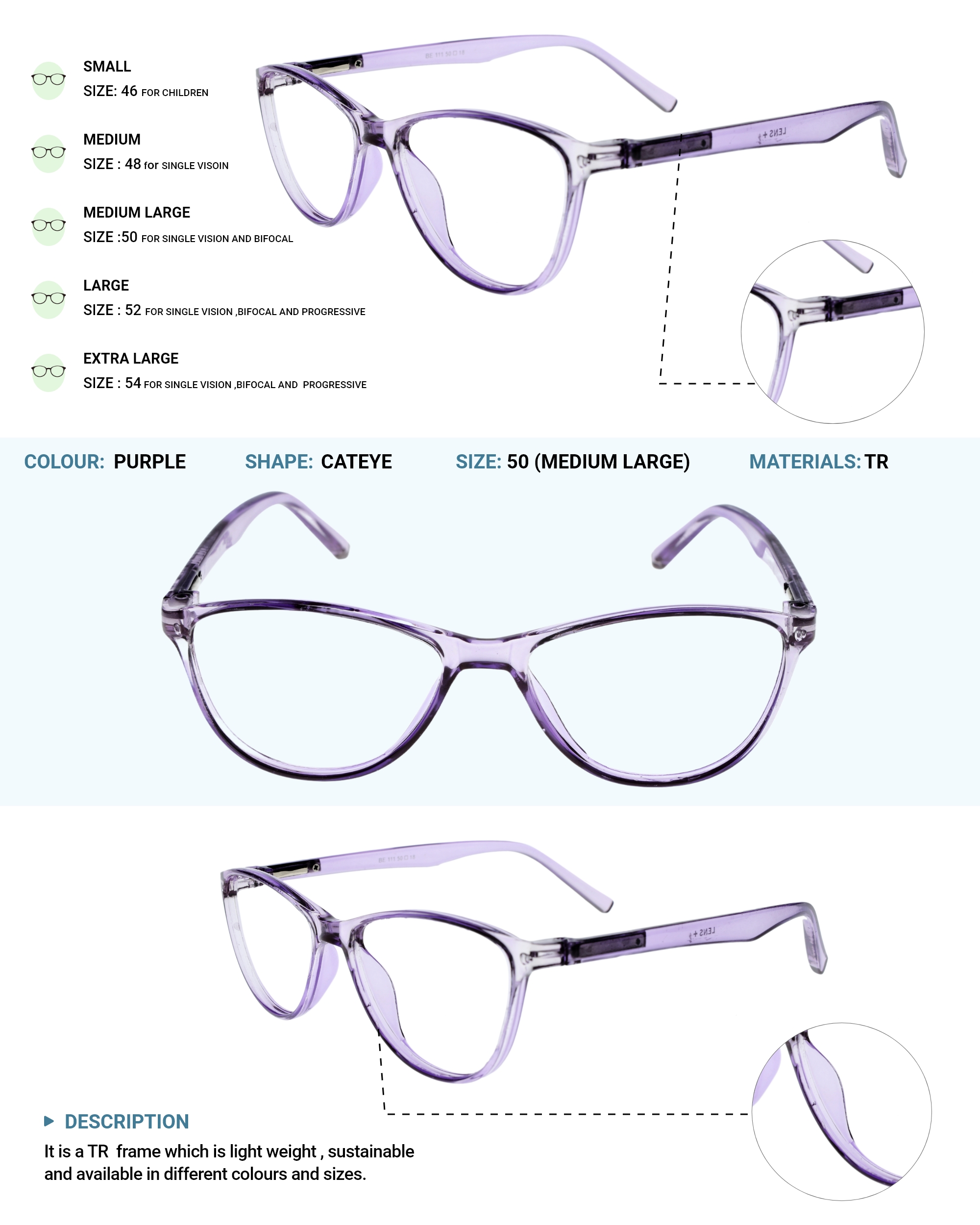 LENS PLUS AIRS PLUS CATEYE EYE FRAME PURPLE
