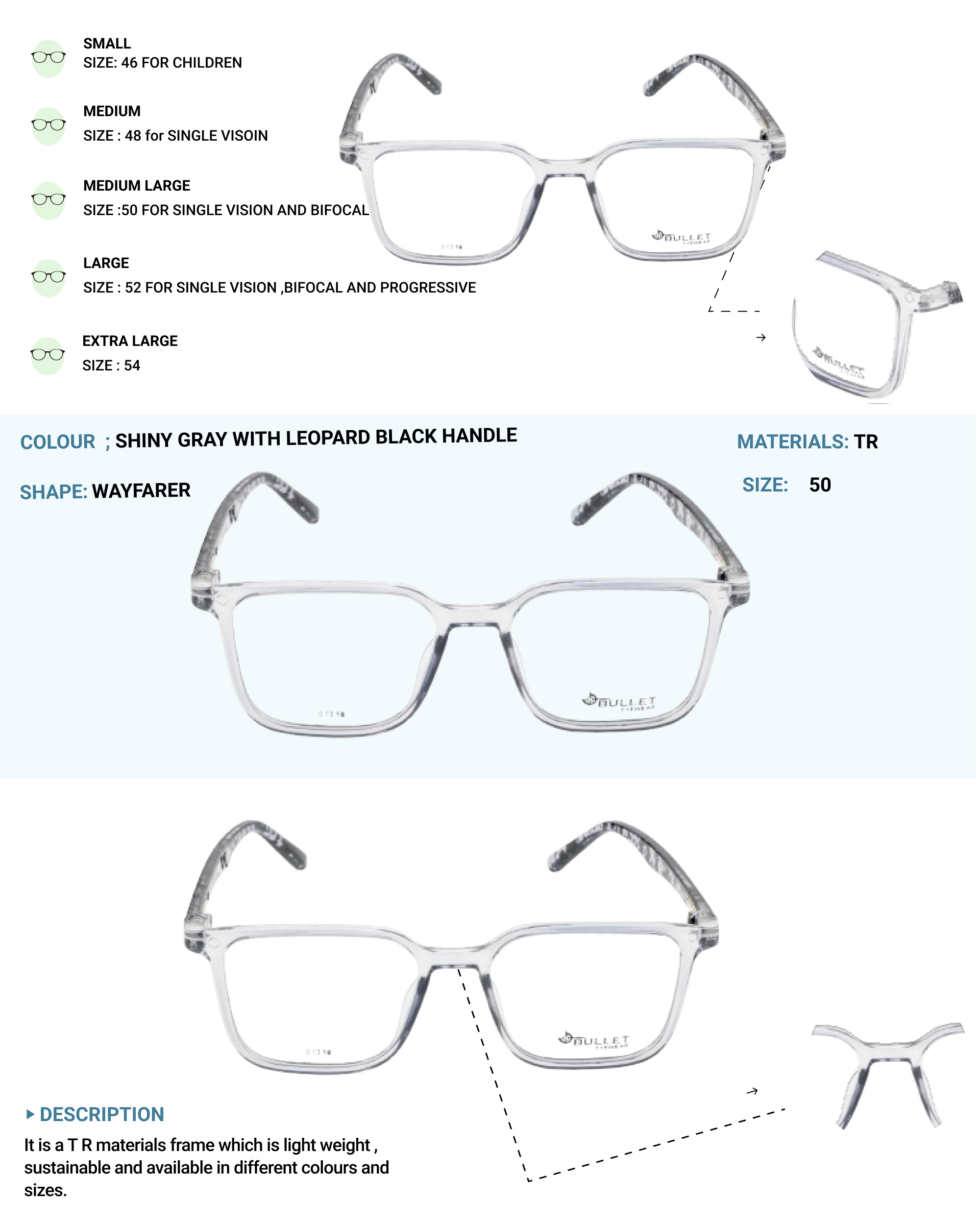 Lensplus Airs Plus Eye Frame Wayfarer Shiny Gray With Black Leopard