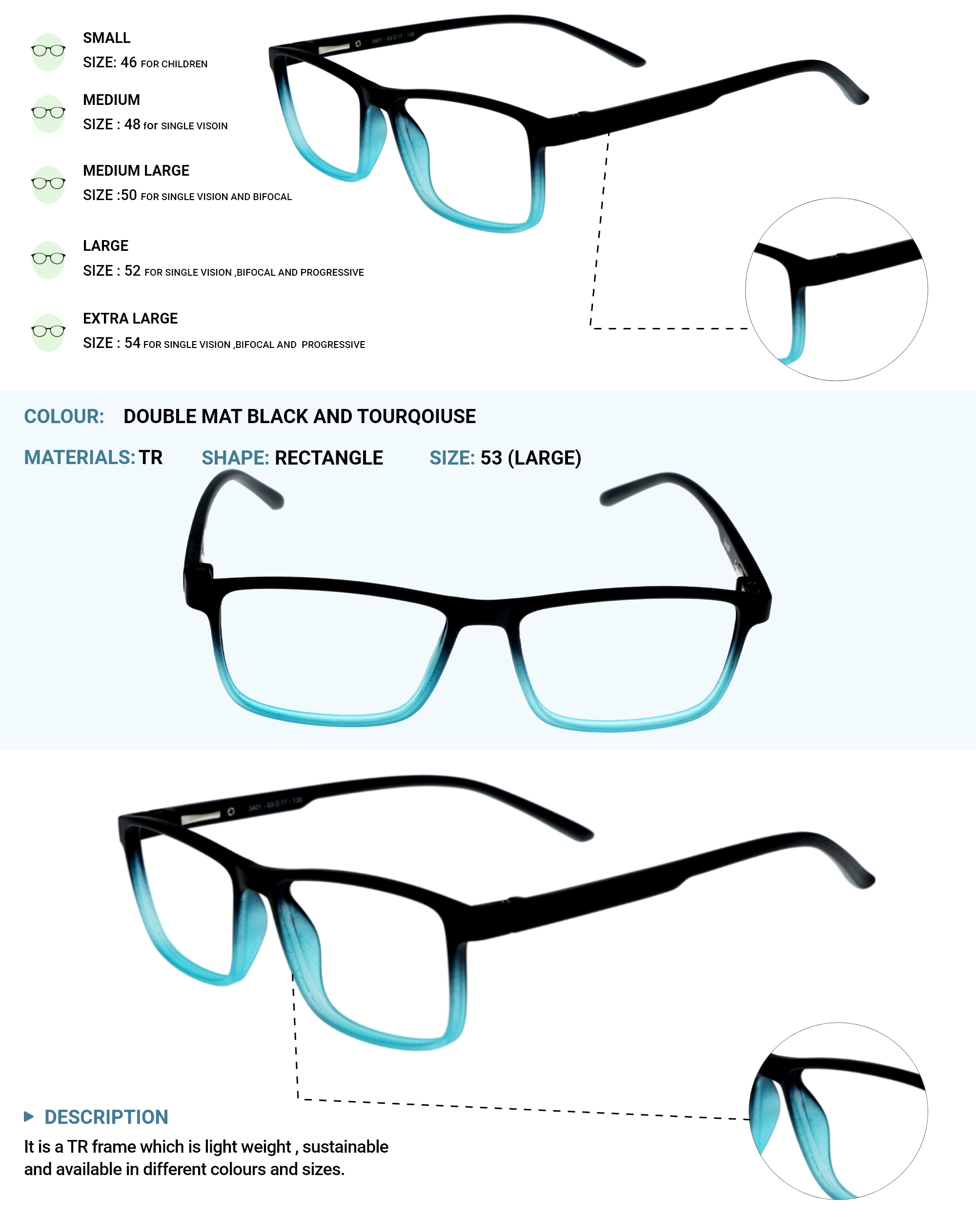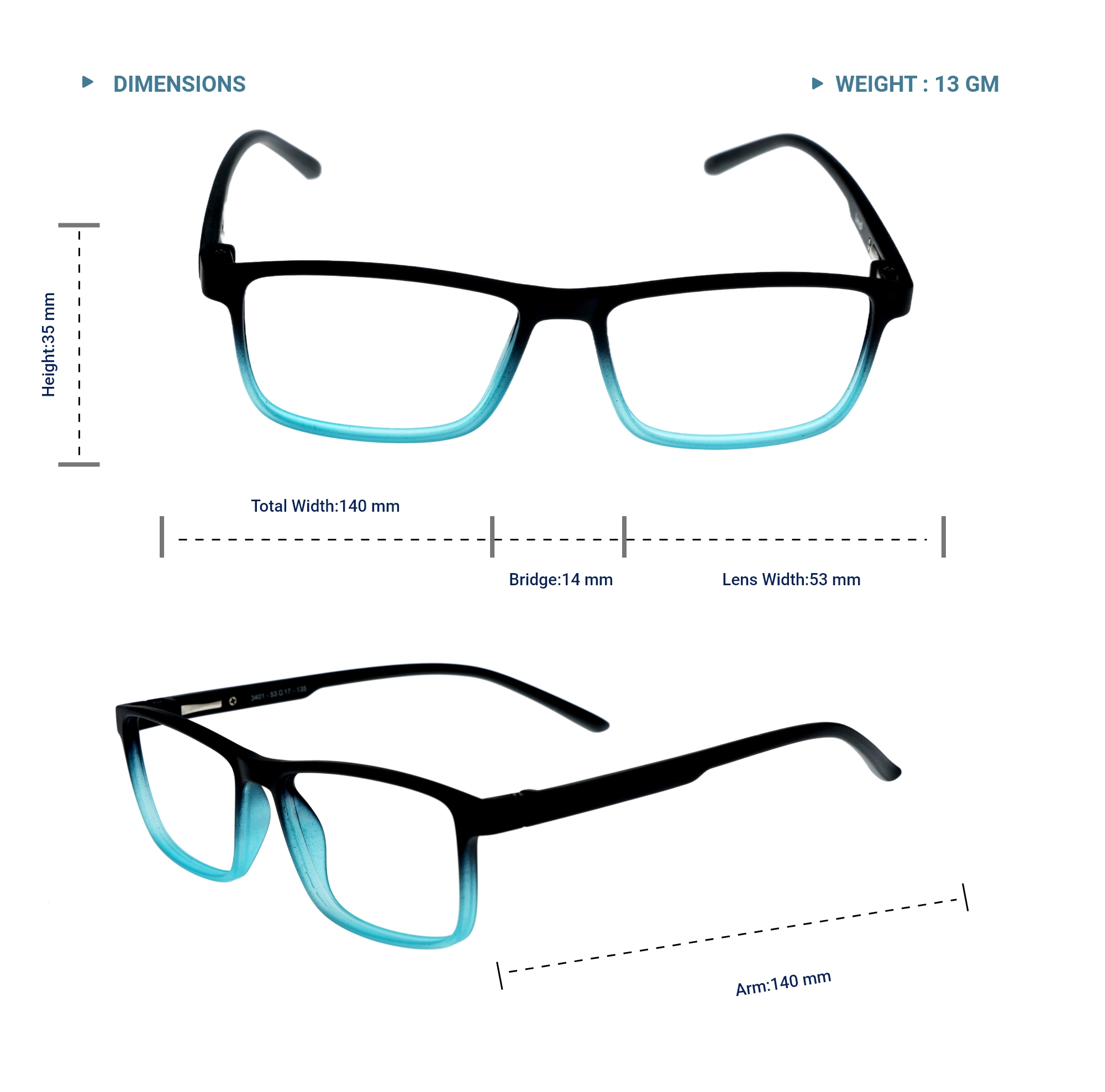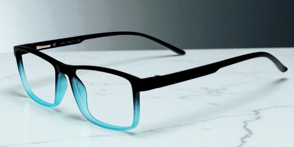 LENS PLUS AIRS RECTANGLE EYE FRAME DOUBLE MAT BLACK AND TOURQOIUSE