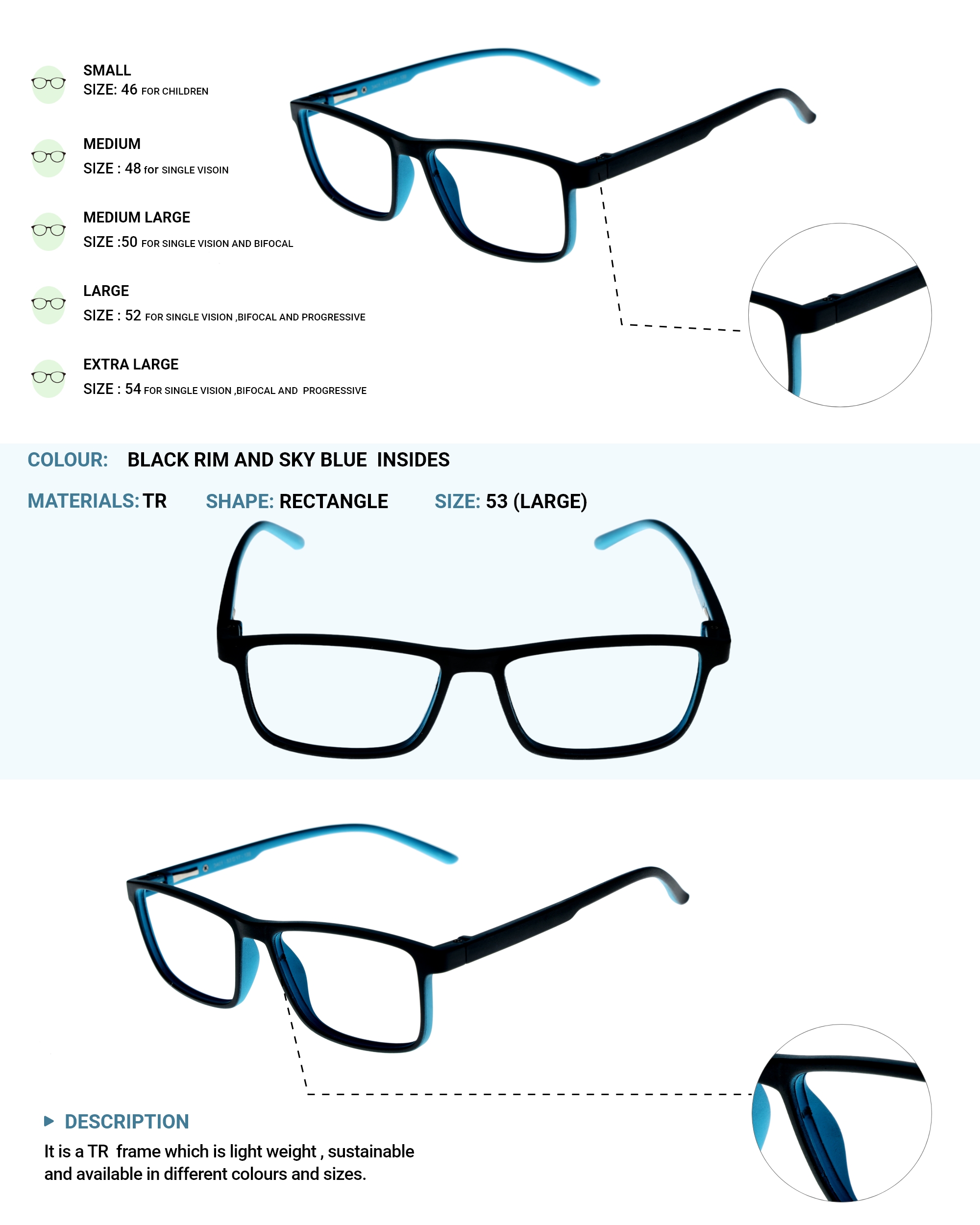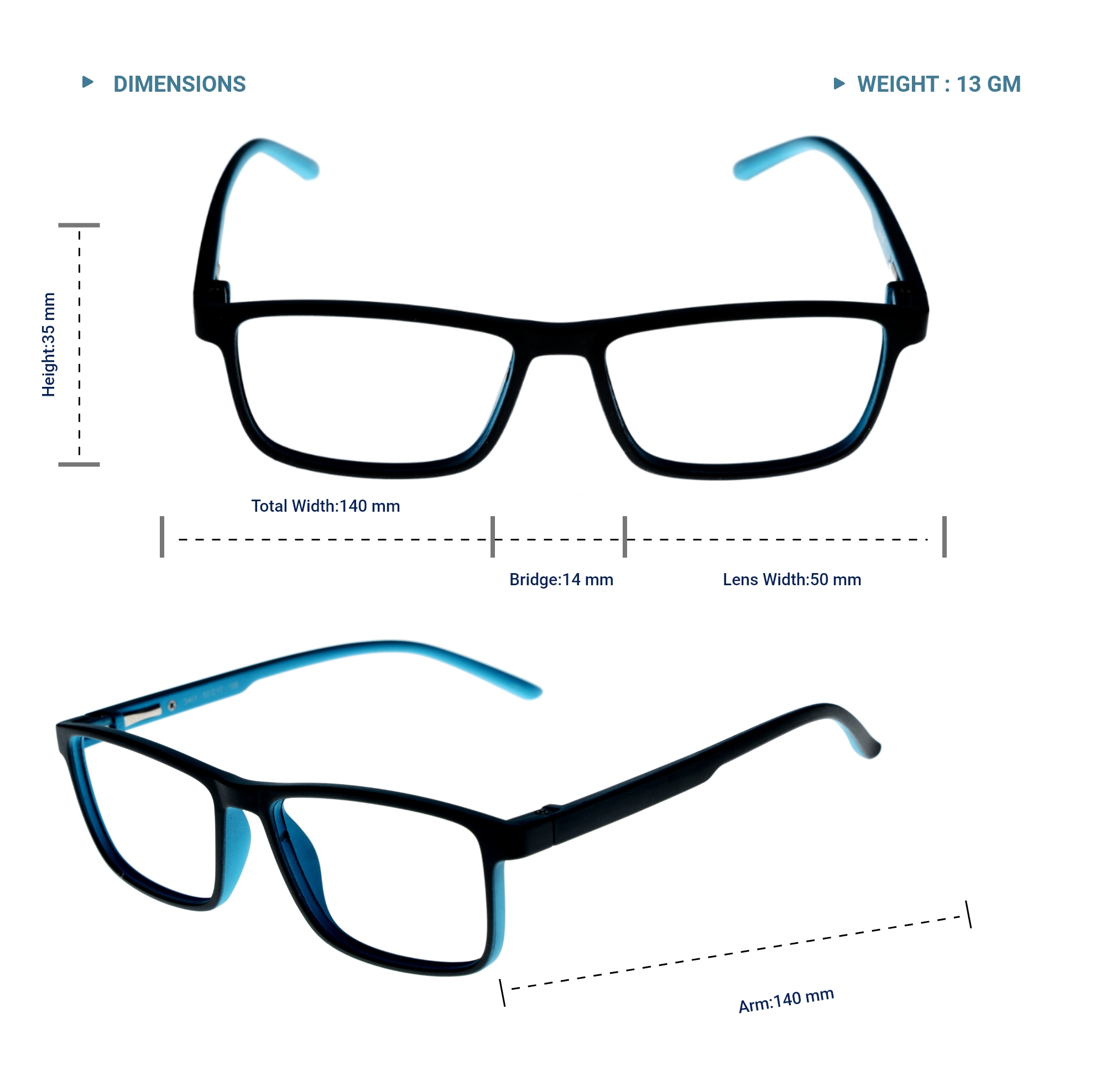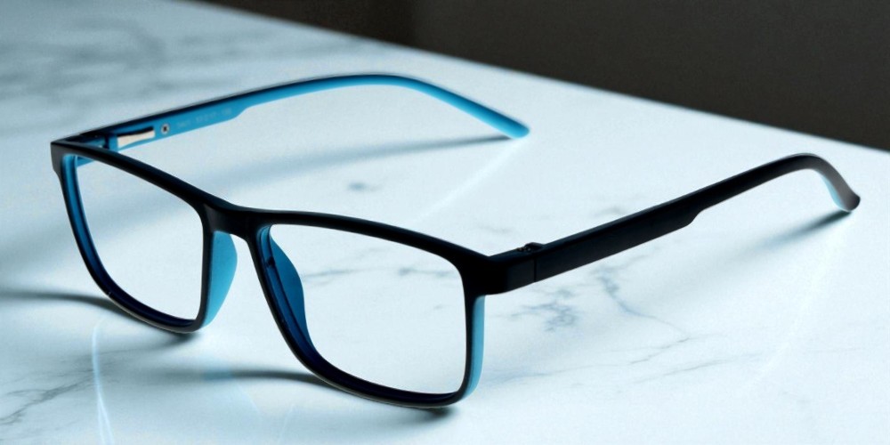 LENS PLUS AIRS RECTANGLE EYE FRAME BLACK RIM WITH SKY BLUE INSIDE