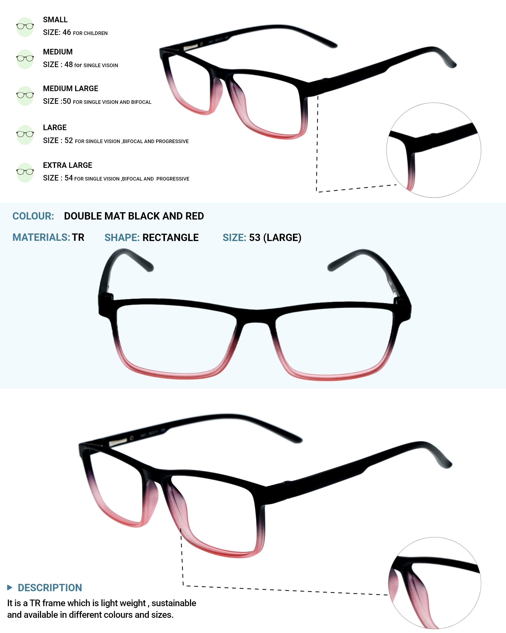 LENS PLUS AIRS RECTANGLE EYE FRAME DOUBLE MAT BLACK AND RED