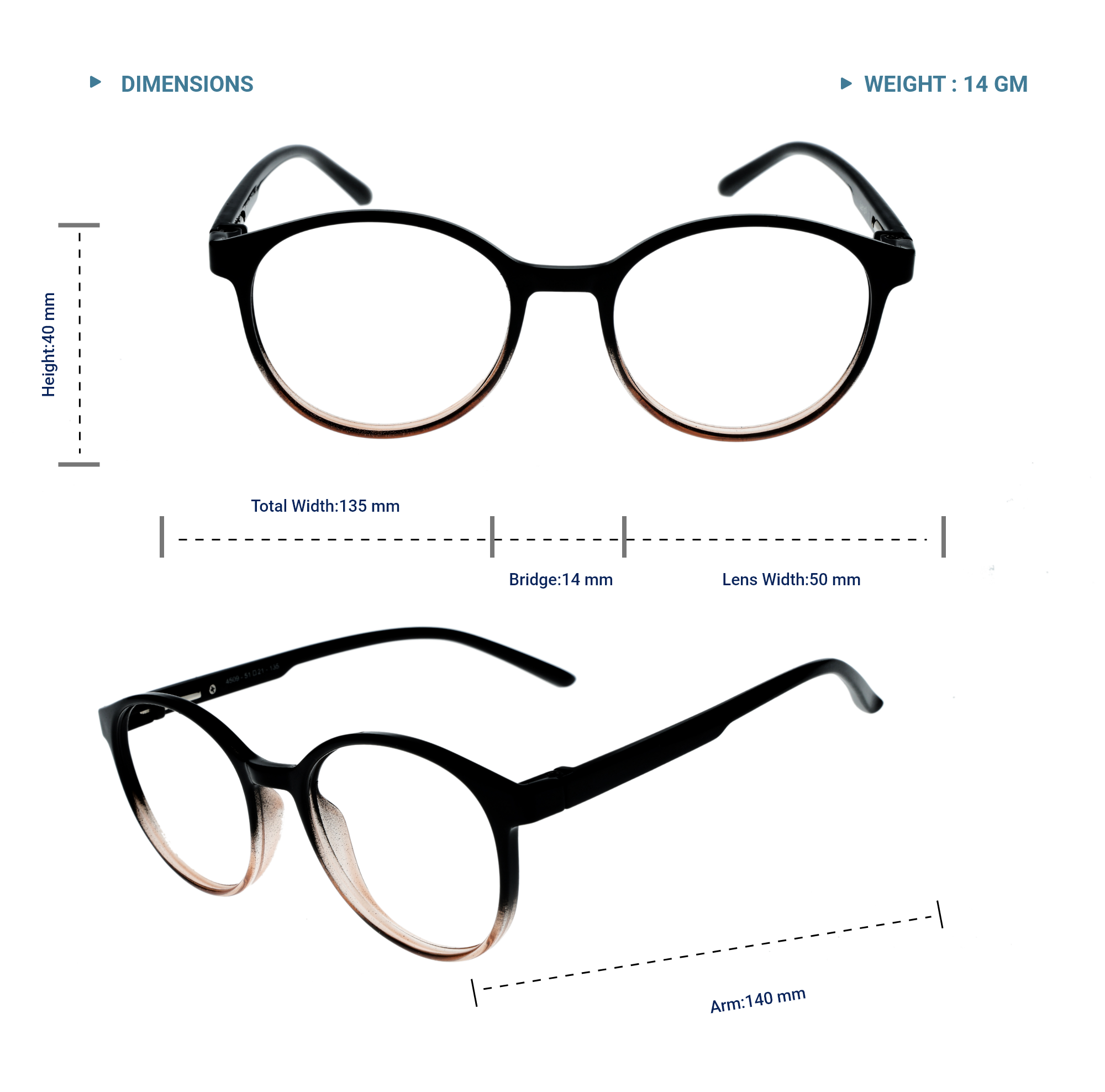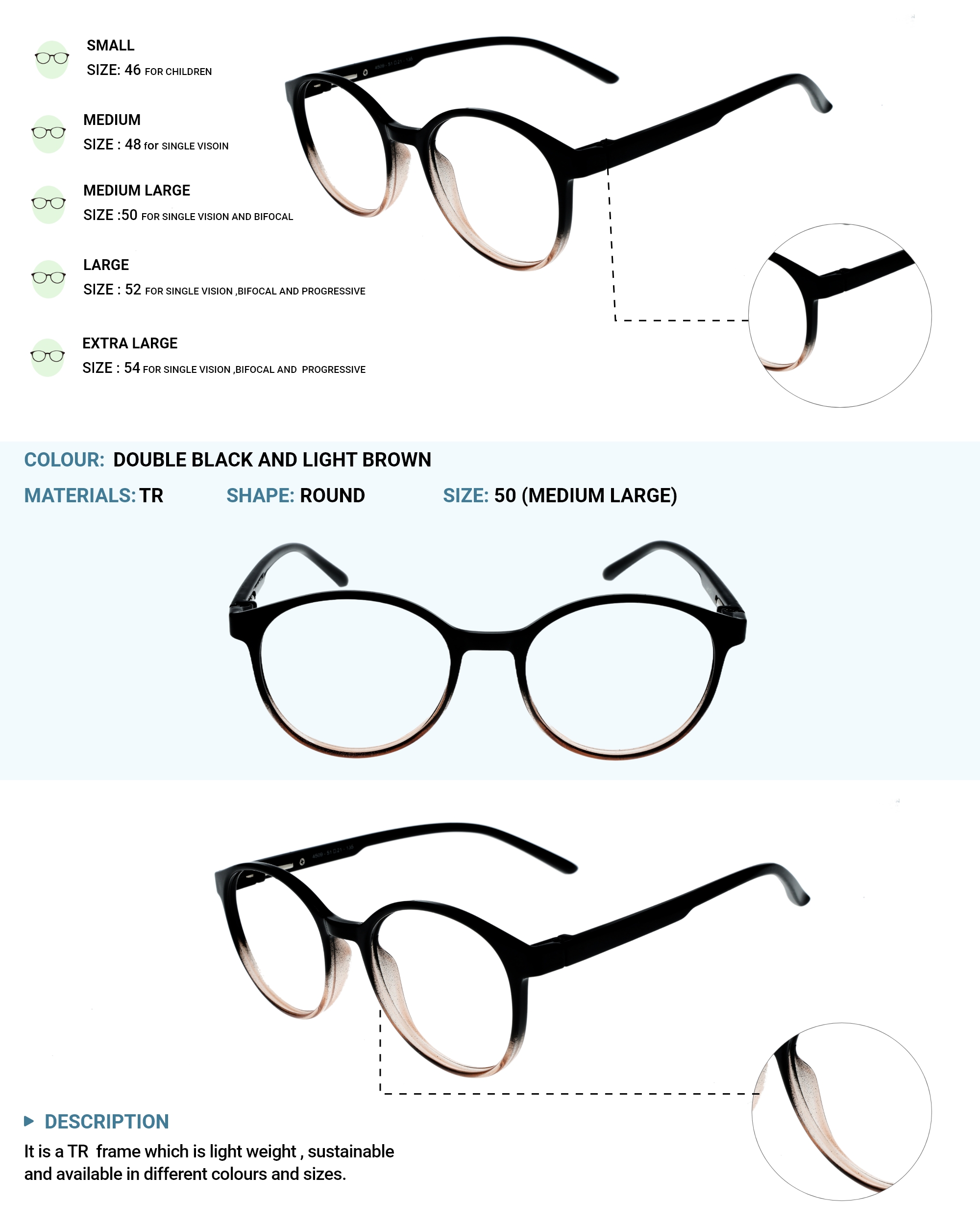 LENS PLUS AIRS DUAL ROUND EYE FRAME DOUBLE BLACK AND LIGHT BROWN