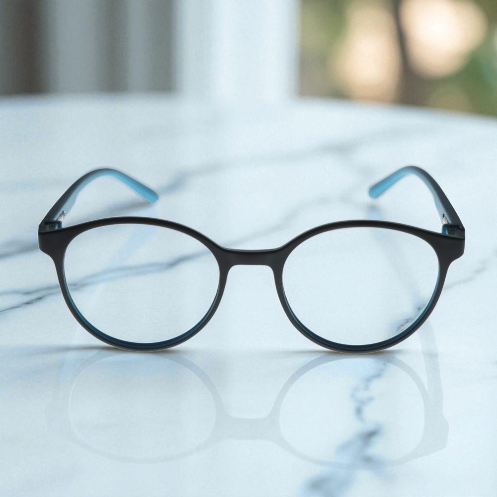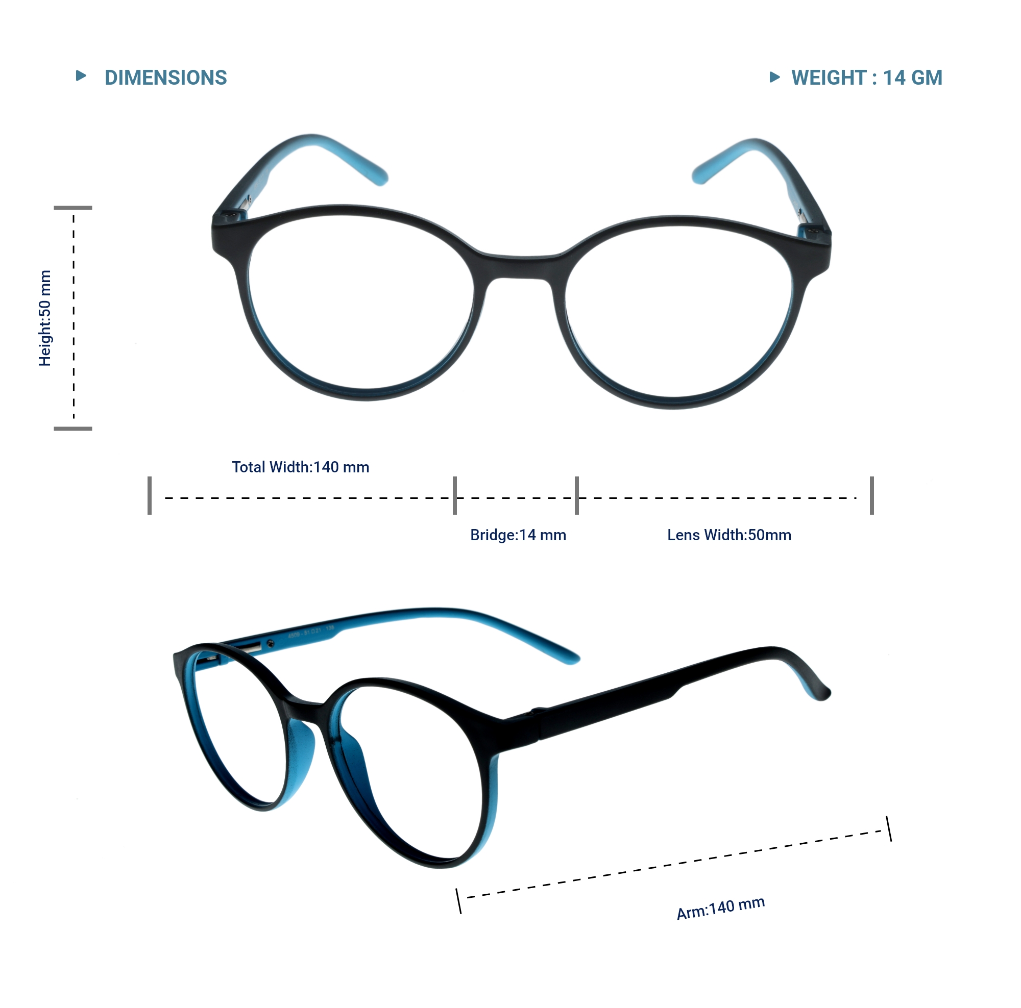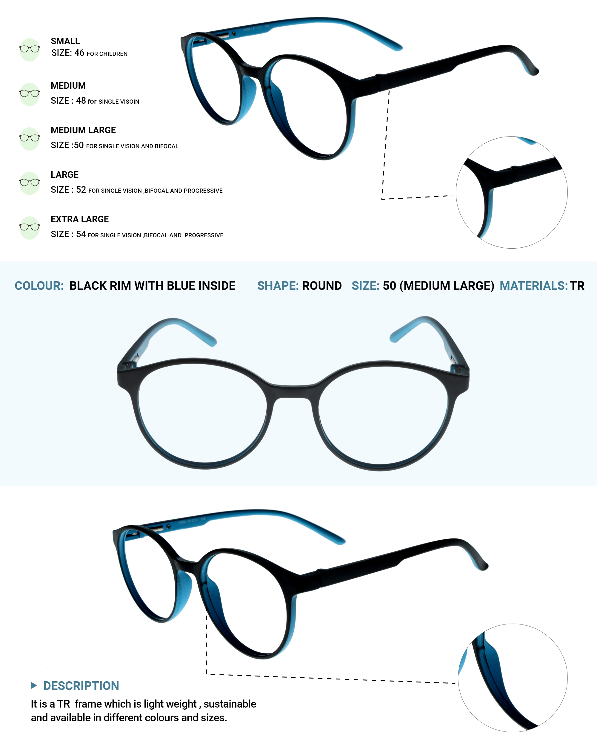 LENS PLUS AIRS ROUND EYE FRAME BLACK RIM AND BLUE INSIDE