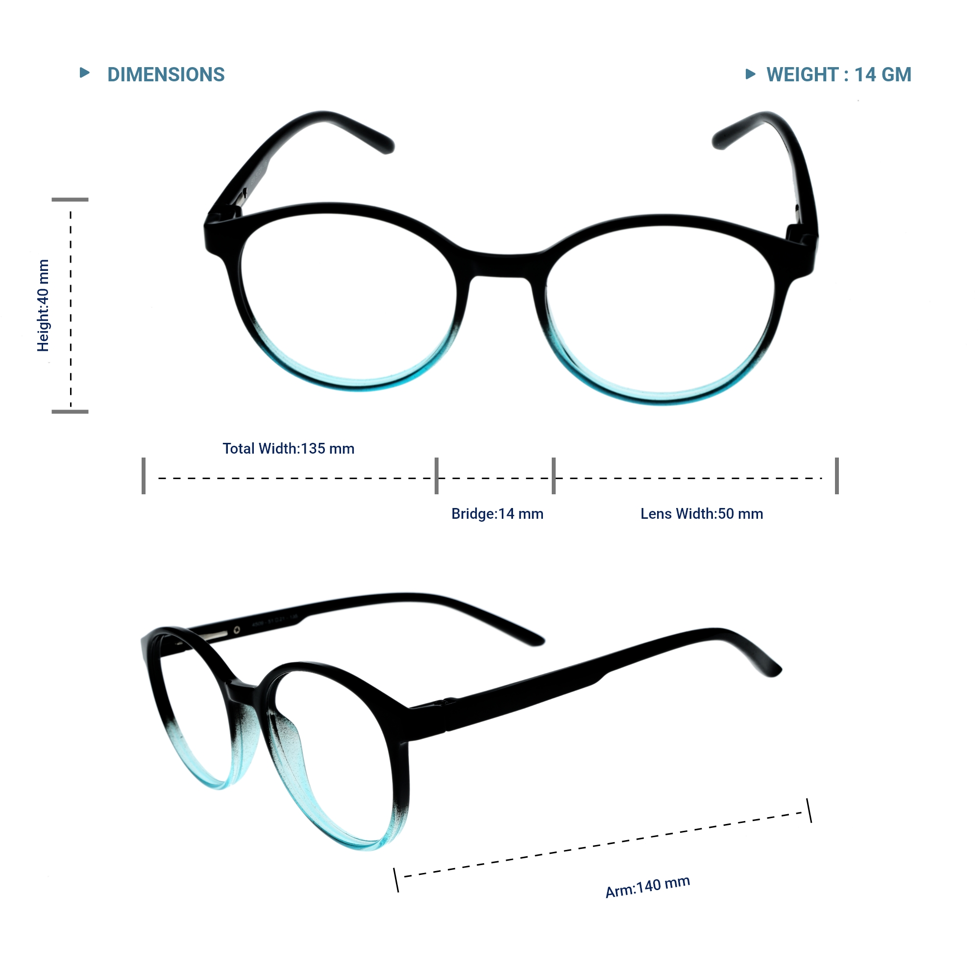 LENS PLUS AIRS ROUND EYE FRAME BLACK AND TOURQOIUSE