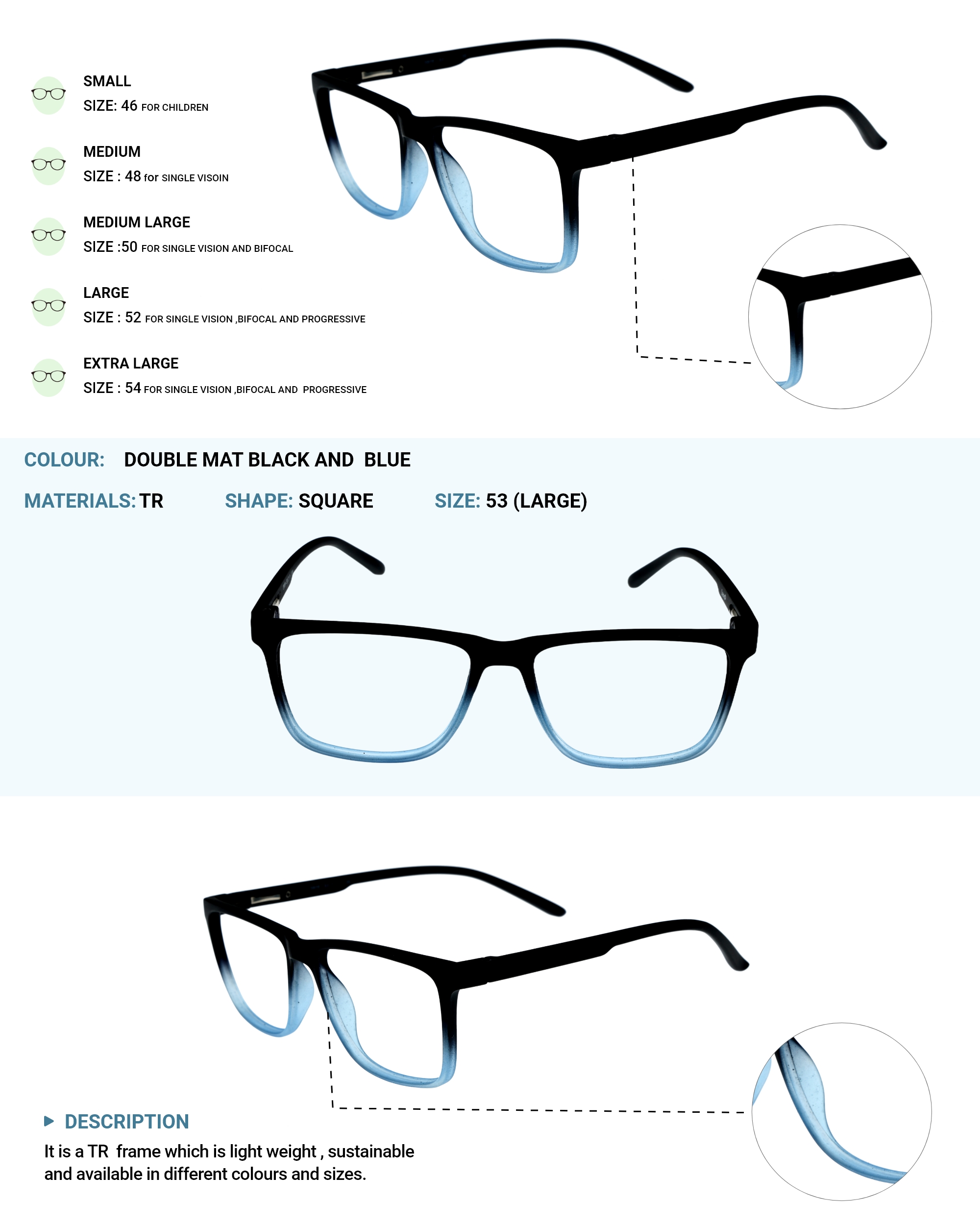 LENS PLUS AIRS SQUARE EYE FRAME DOUBLE BLACK AND BLUE