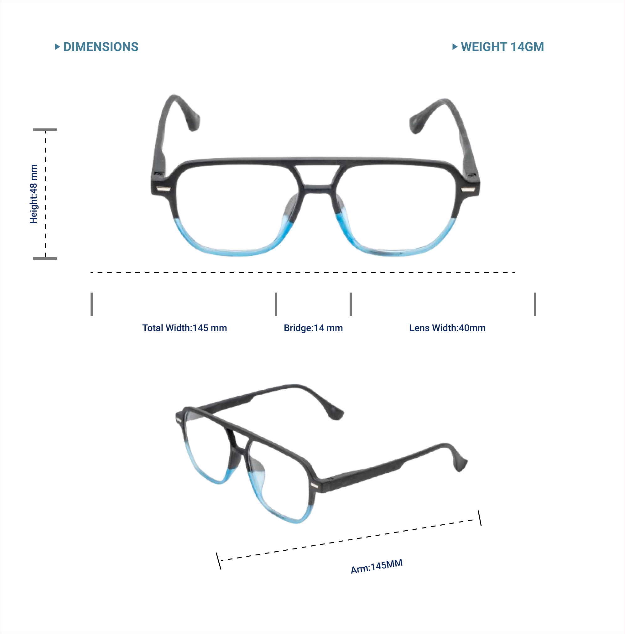 Lensplus Ligero Aviator Eye Frame Double Black And Blue