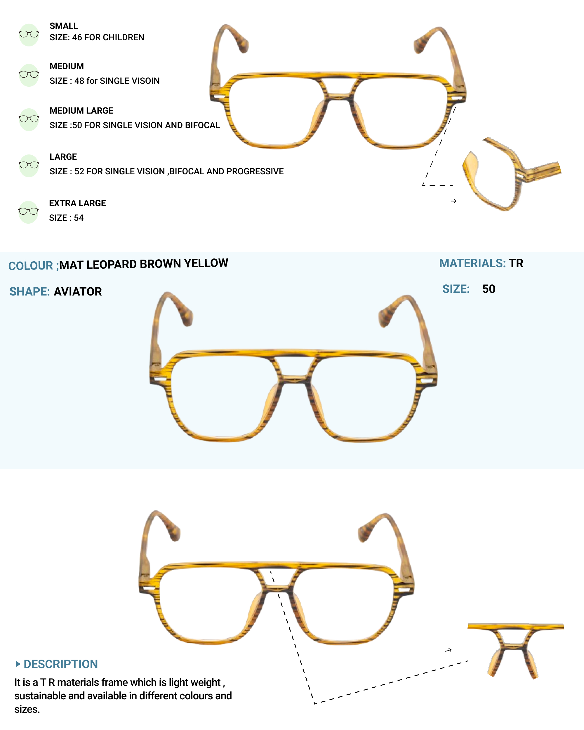 Lensplus Ligero Aviator Eye Frame Mat Leopard Brown And Yellow