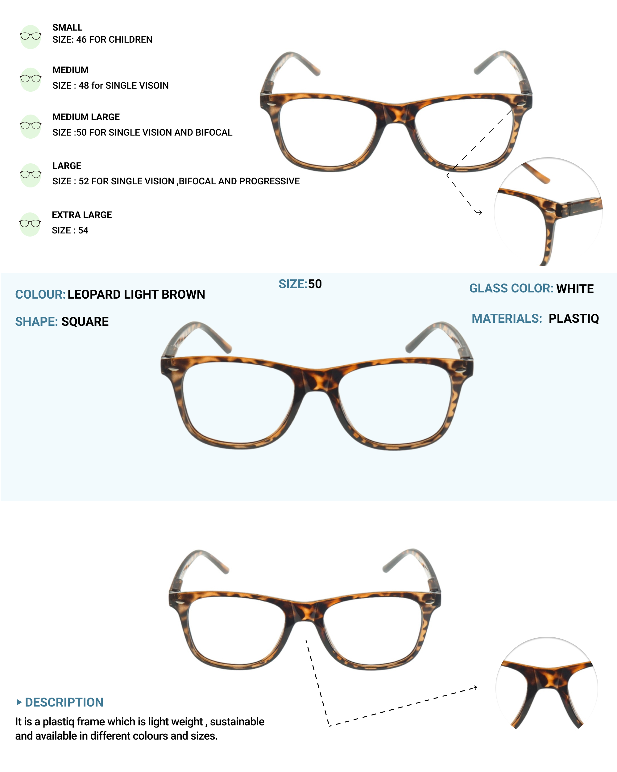 LENS PLUS FARER TR WAYFARERS SQUARE EYE FRAME LEOPARD LIGHT BROWN