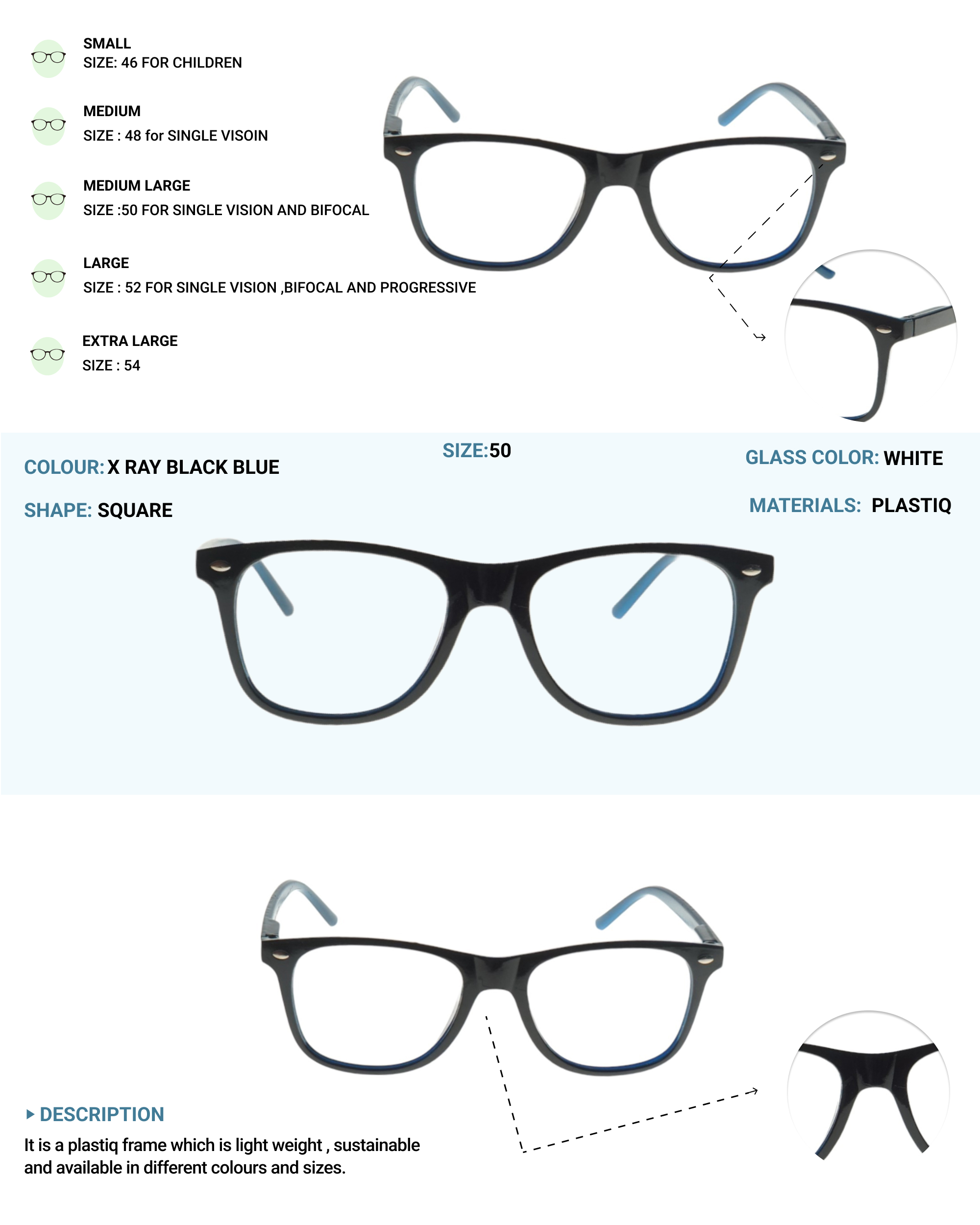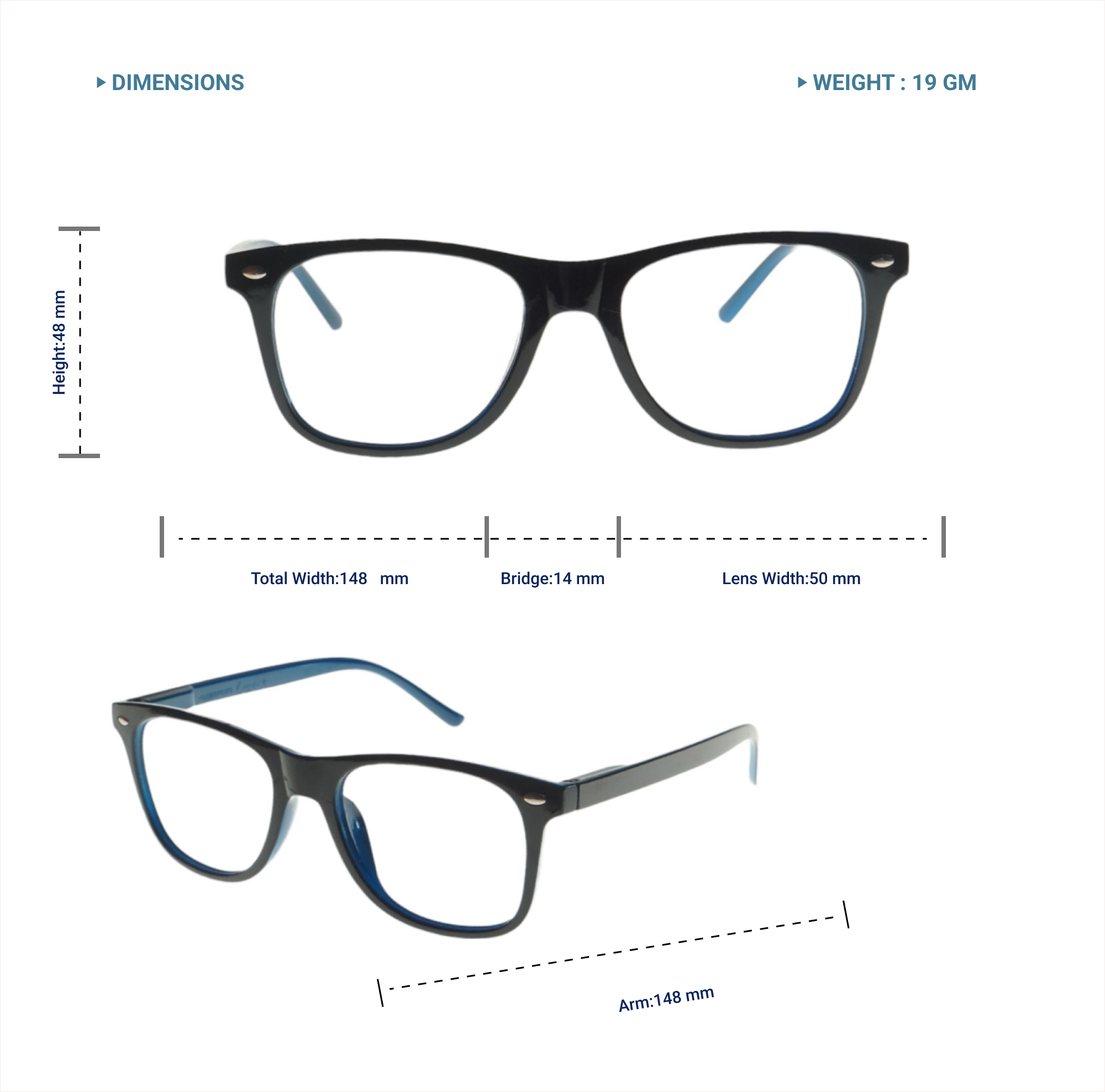 LENS PLUS FARER TR WAYFARERS SQUARE EYE FRAME X RAY BLACK BLUE