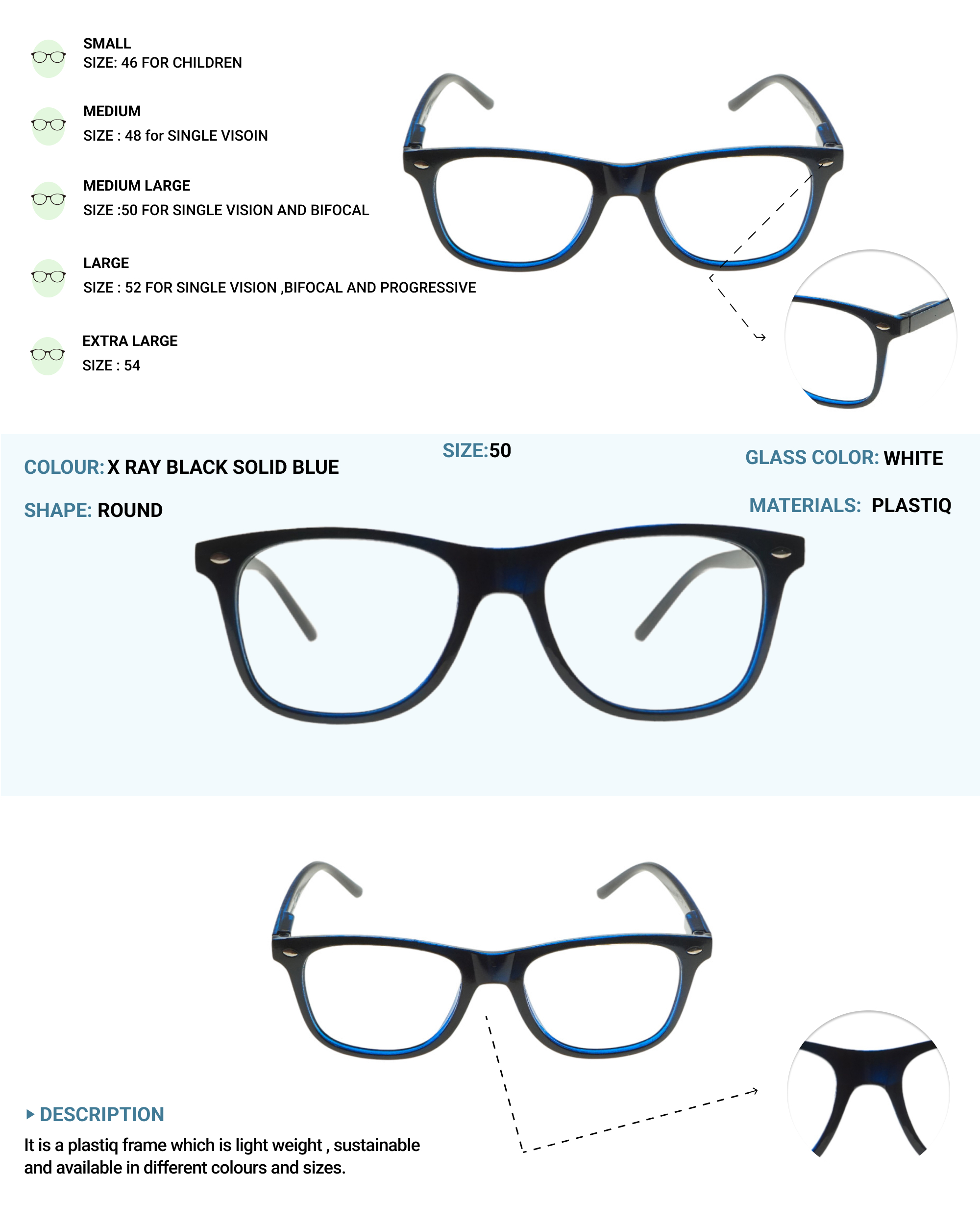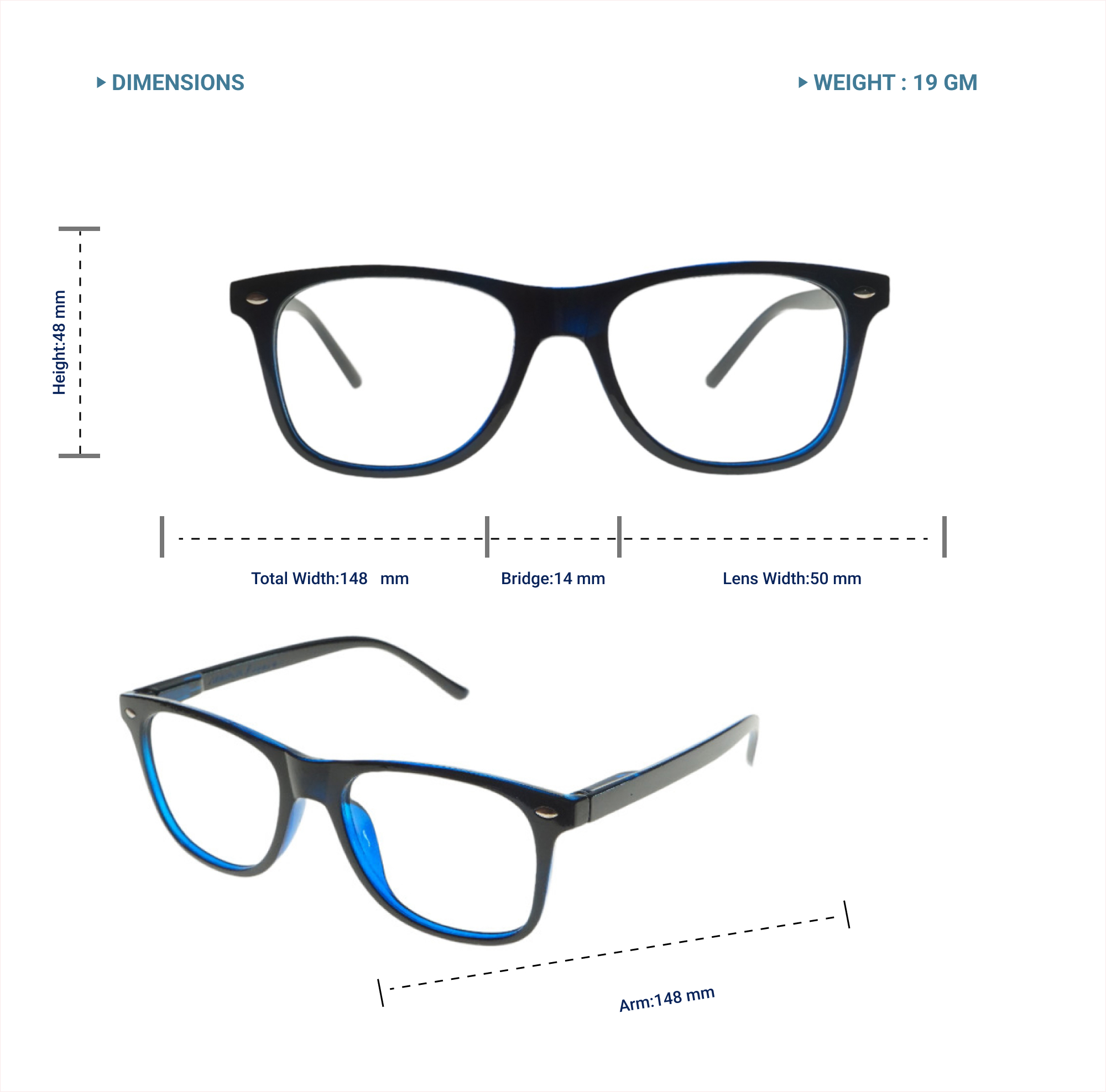 LENS PLUS FARER TR WAYFARERS SQUARE EYE FRAME X RAY BLACK SOLID BLUE