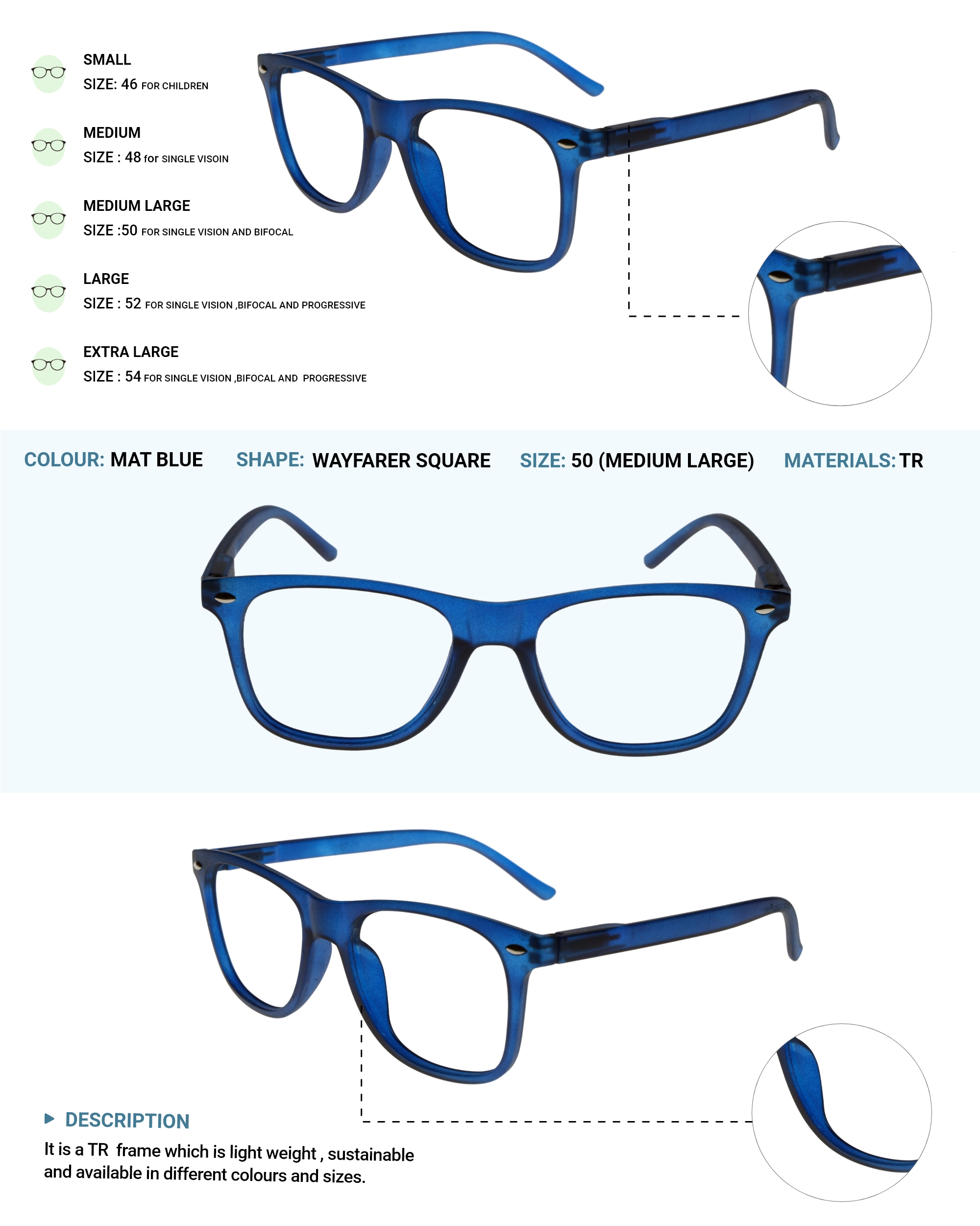 LENS PLUS FARER TR SQUARE EYE FRAME MAT BLUE