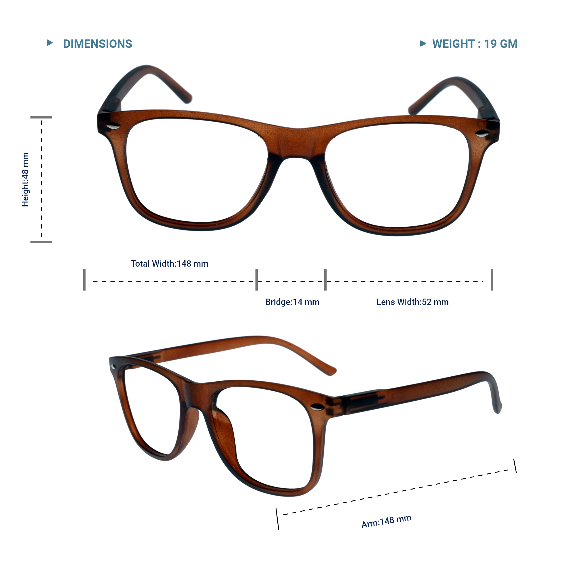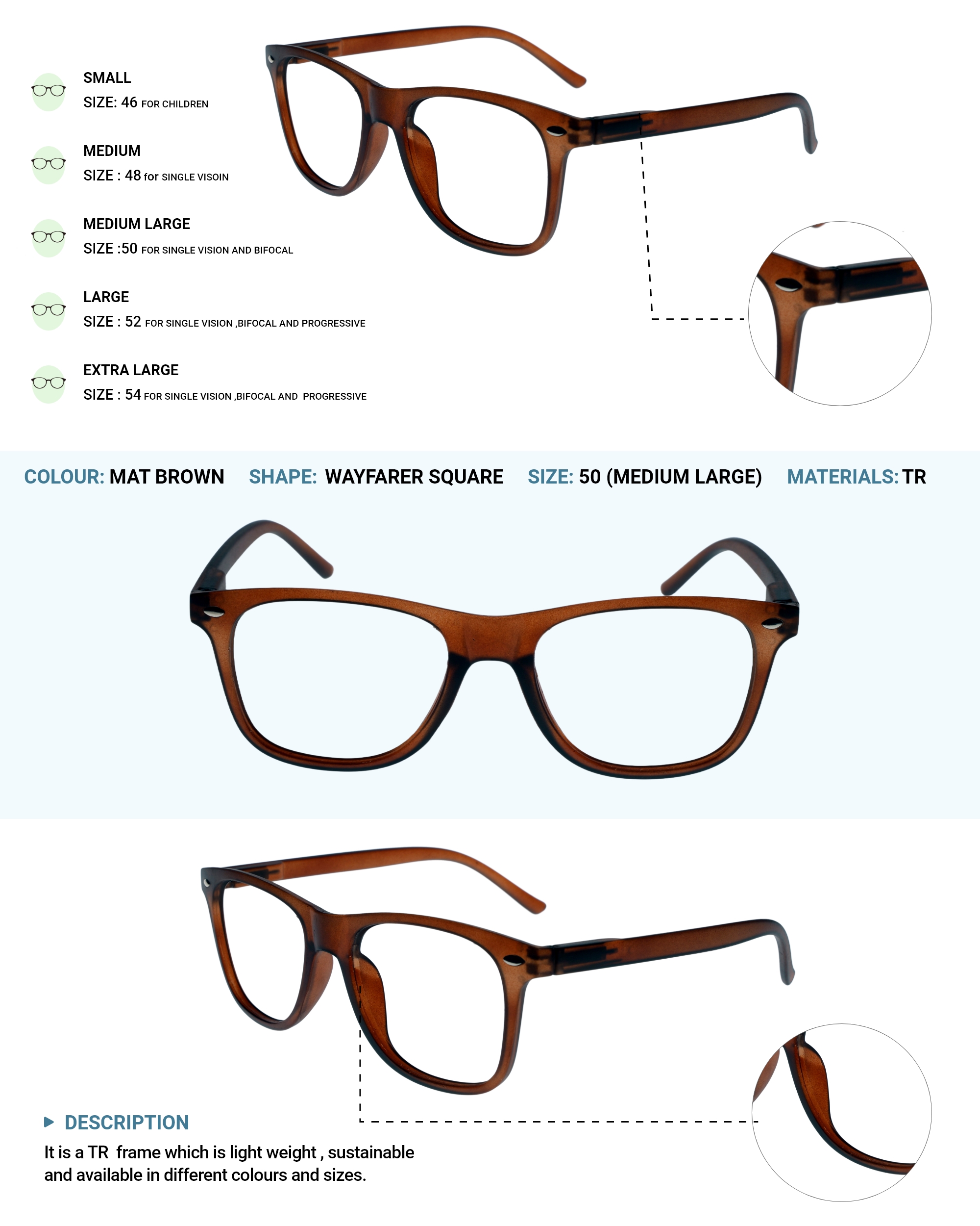 LENS PLUS FARER TR SQUARE EYE FRAME MAT BROWN