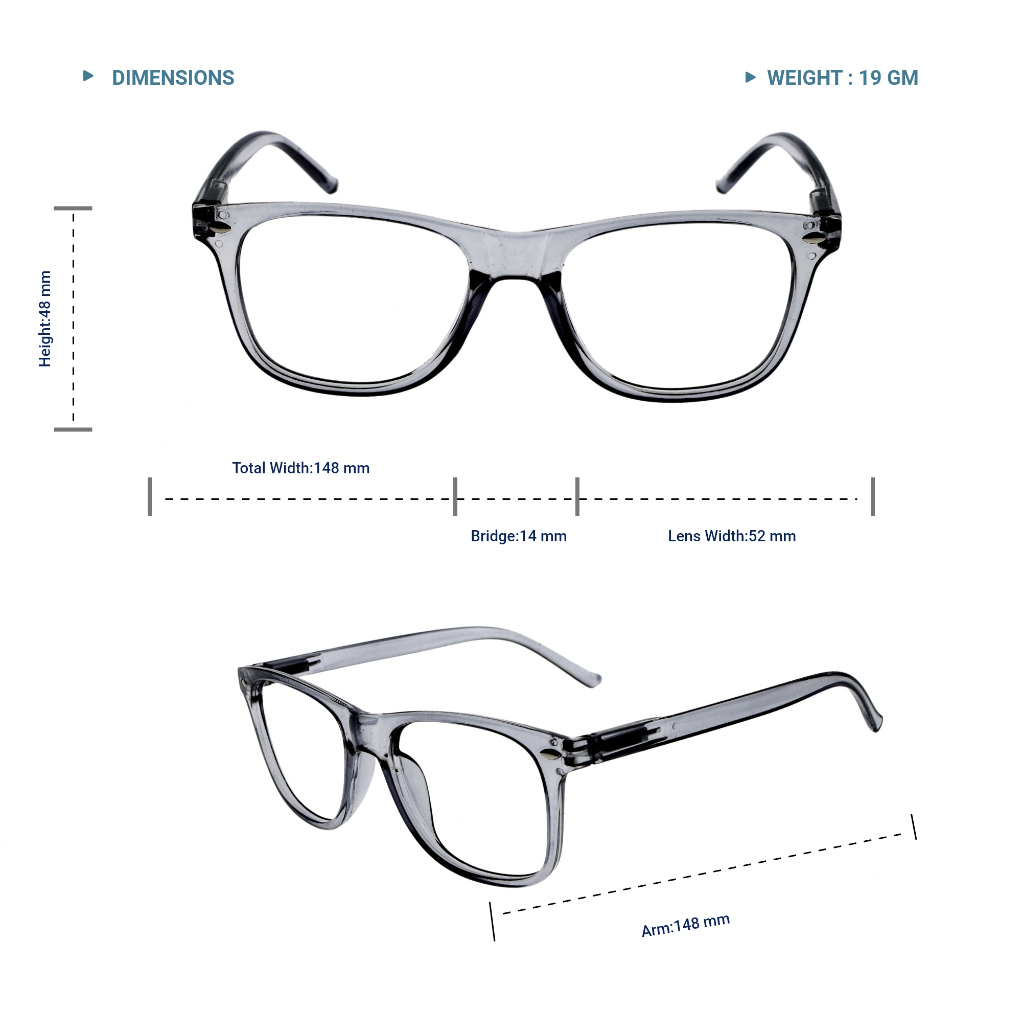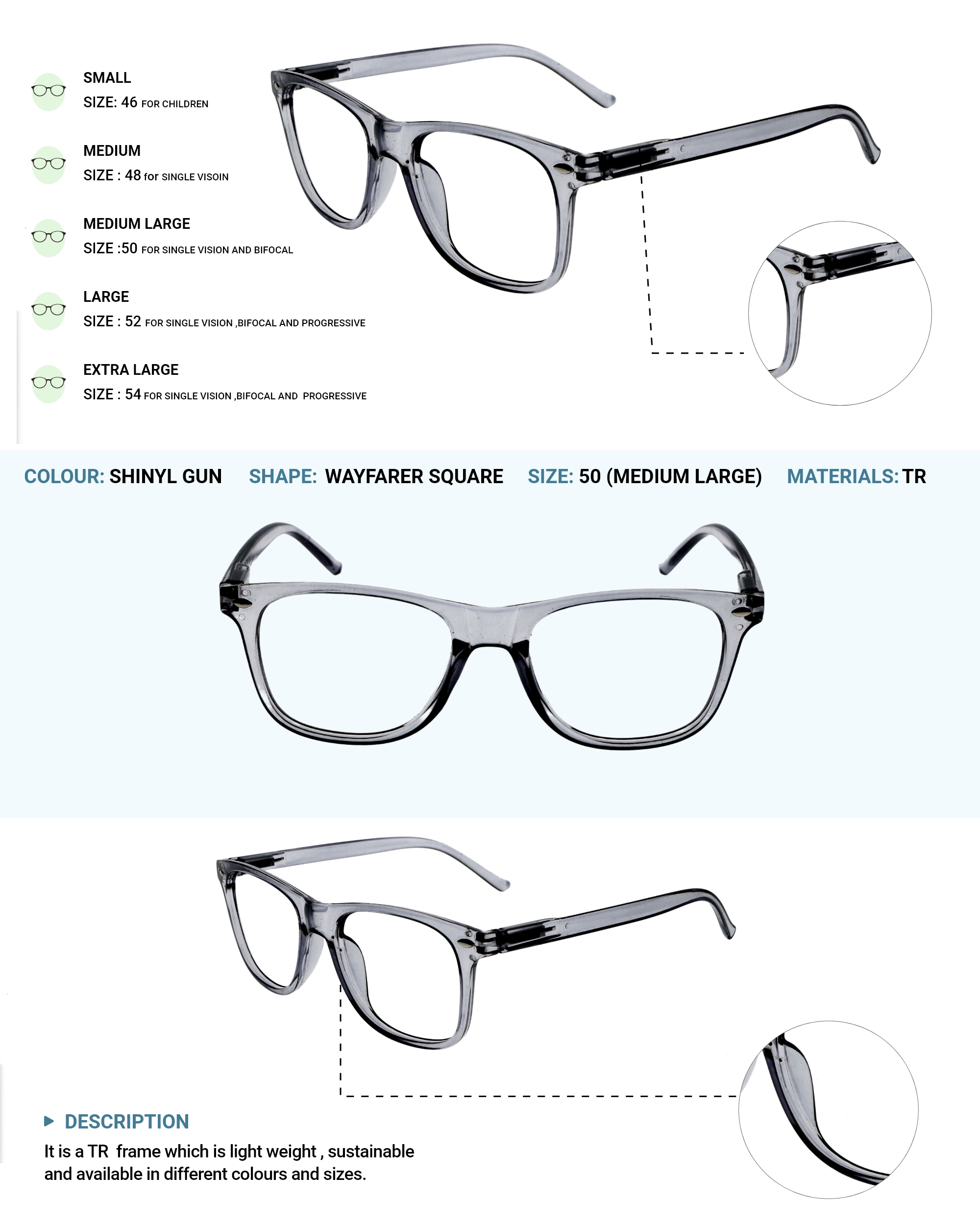 LENS PLUS FARER TR SQUARE EYE FRAME SHINY L GUN