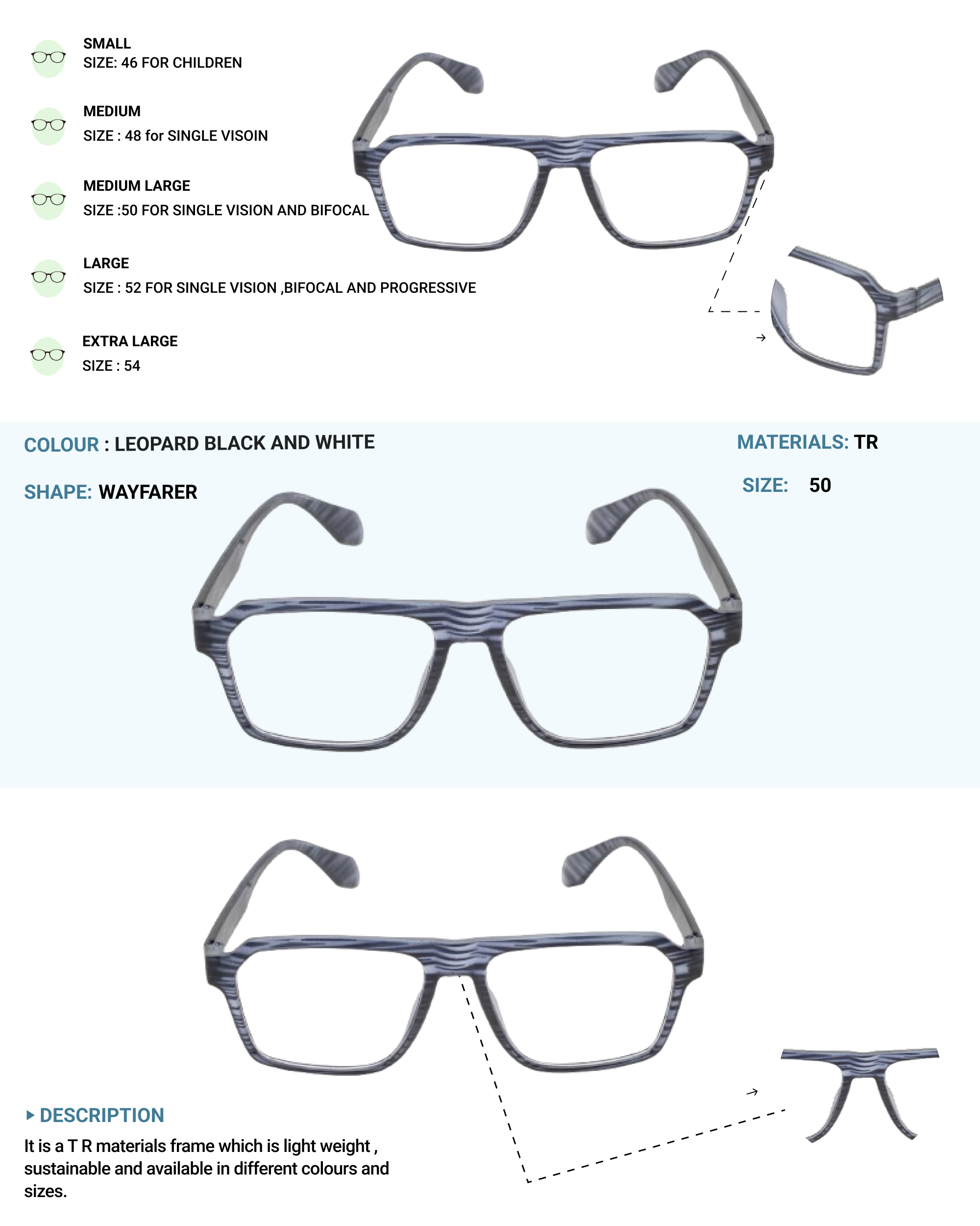 Lensplus Ligero Wayfarer Eye Frame Black And White Leopard