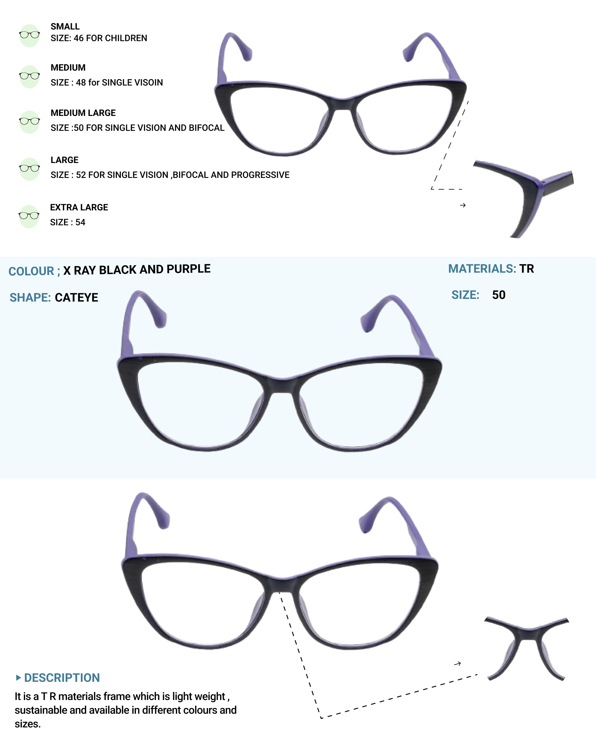 Lensplus Ligero Big Cateye Frame X ray Black And Purpale