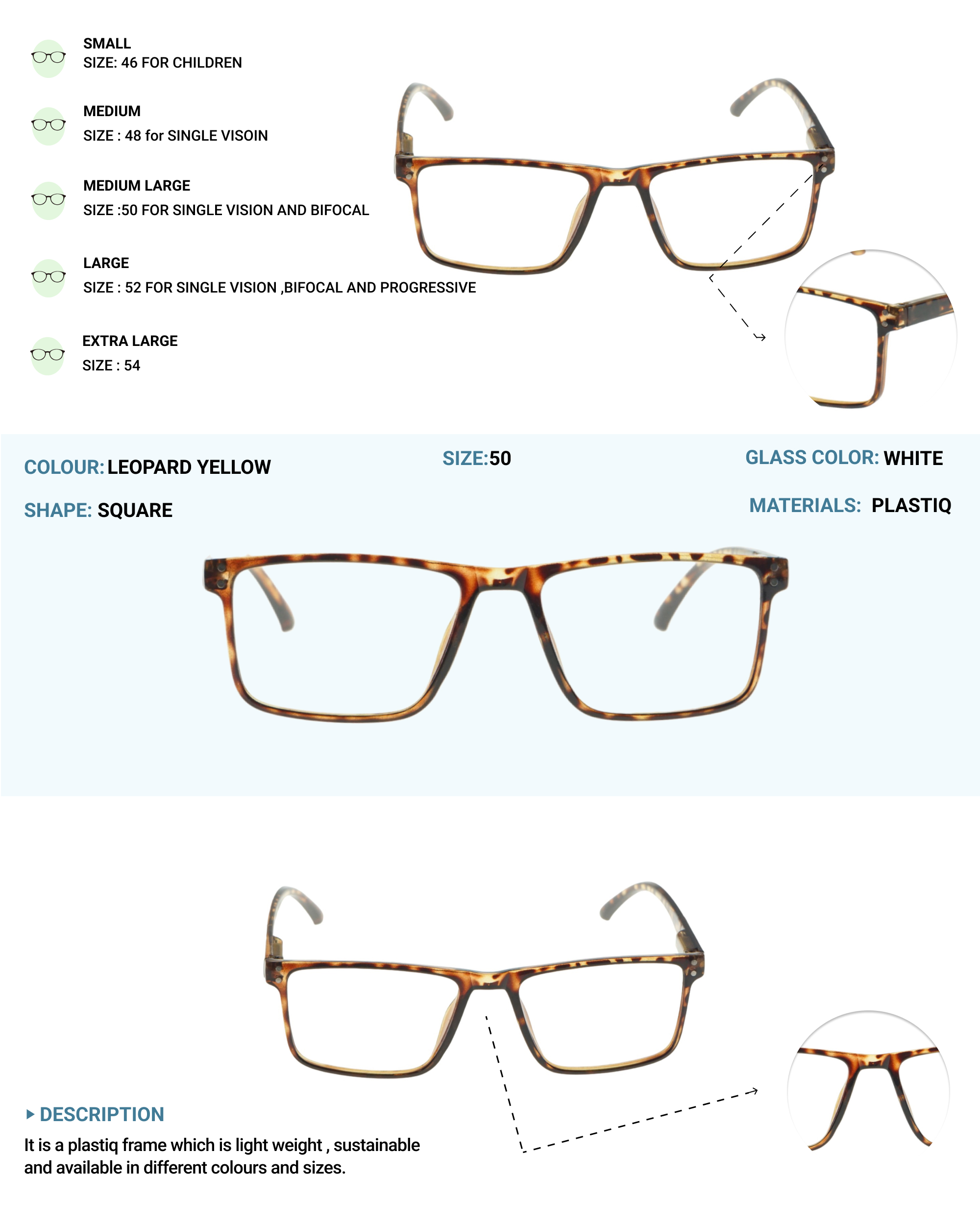 LENS PLUS LIGERO SQUARE EYE FRAME LEOPARD YELLOW