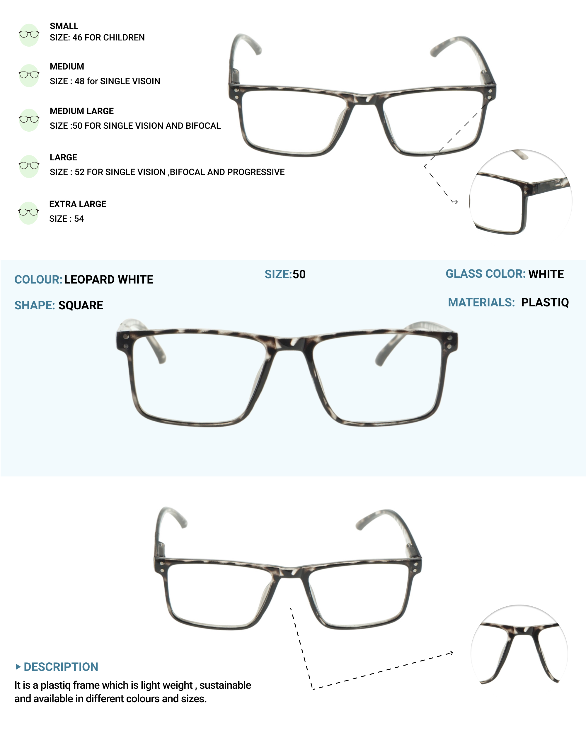 LENS PLUS LIGERO SQUARE EYE FRAME LEOPARD WHITE