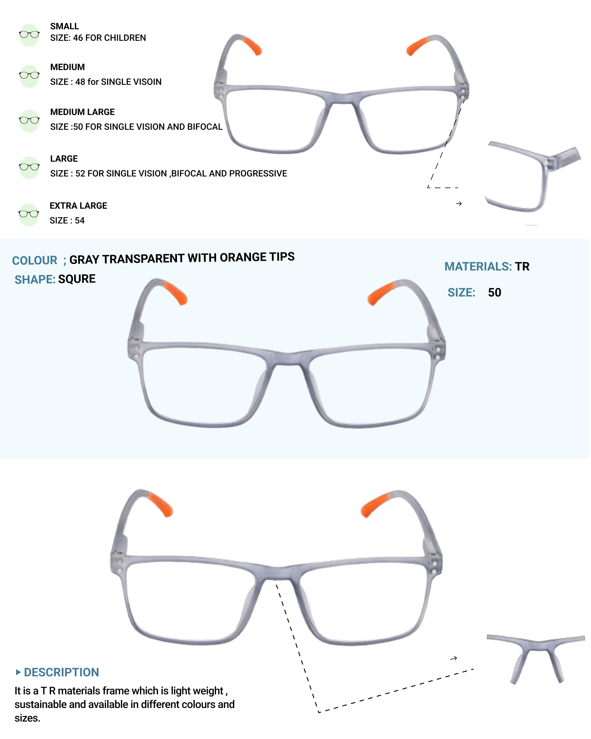 Lensplus Ligero gray transparent with orange tips