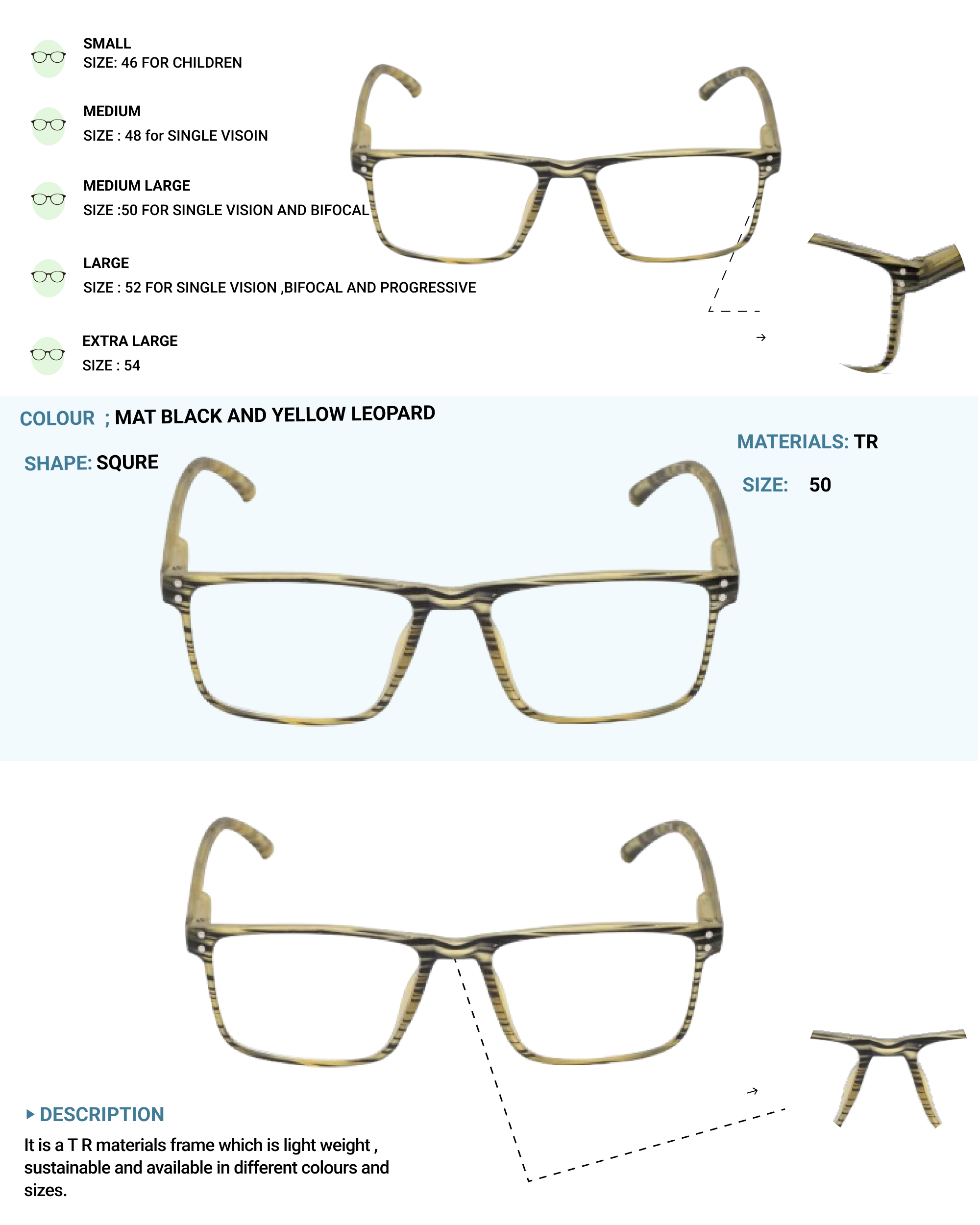 Lensplus LIGERO SQUARE EYE FRAME MAT BLACK AND YELLOW LEOPARD