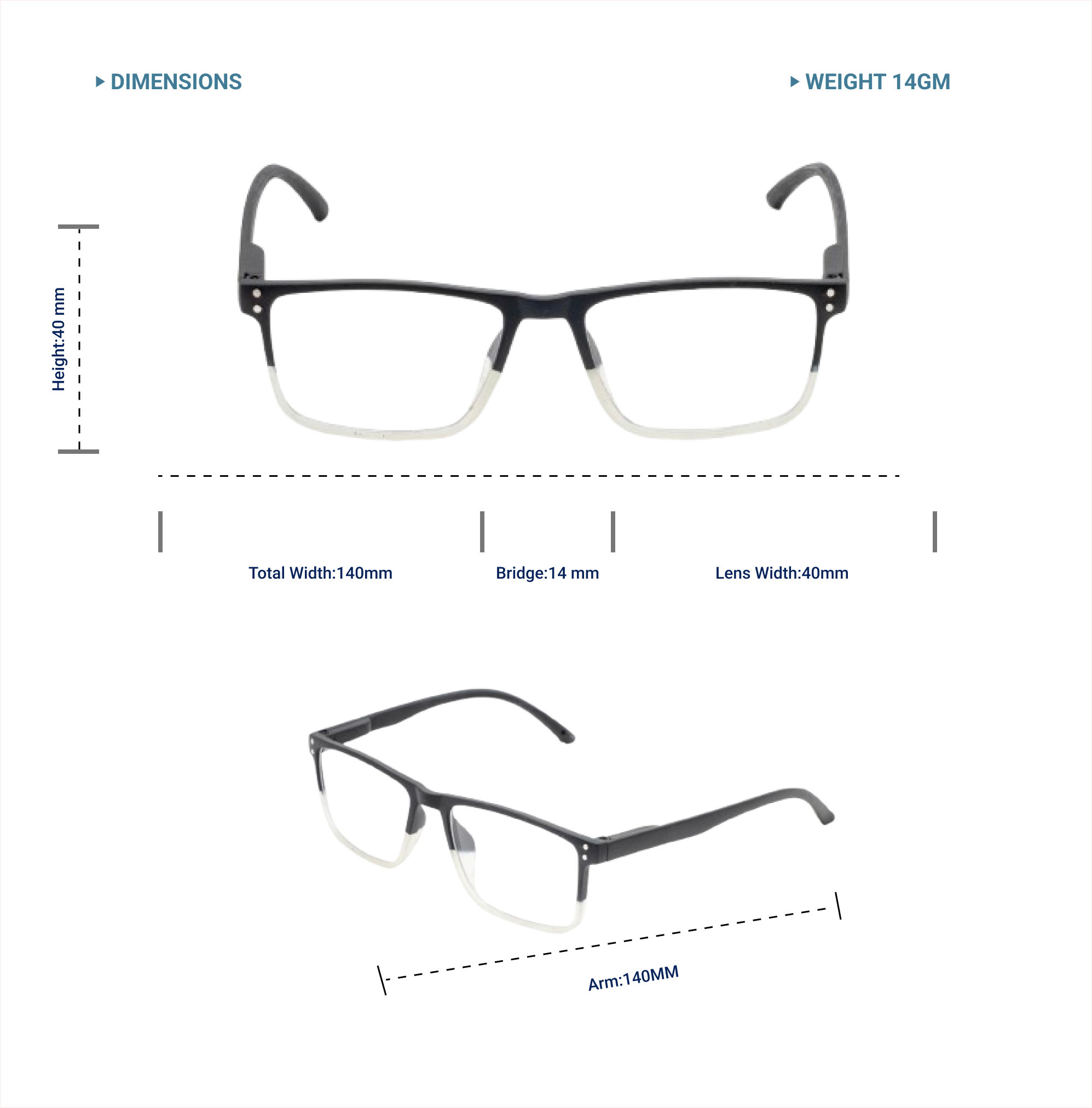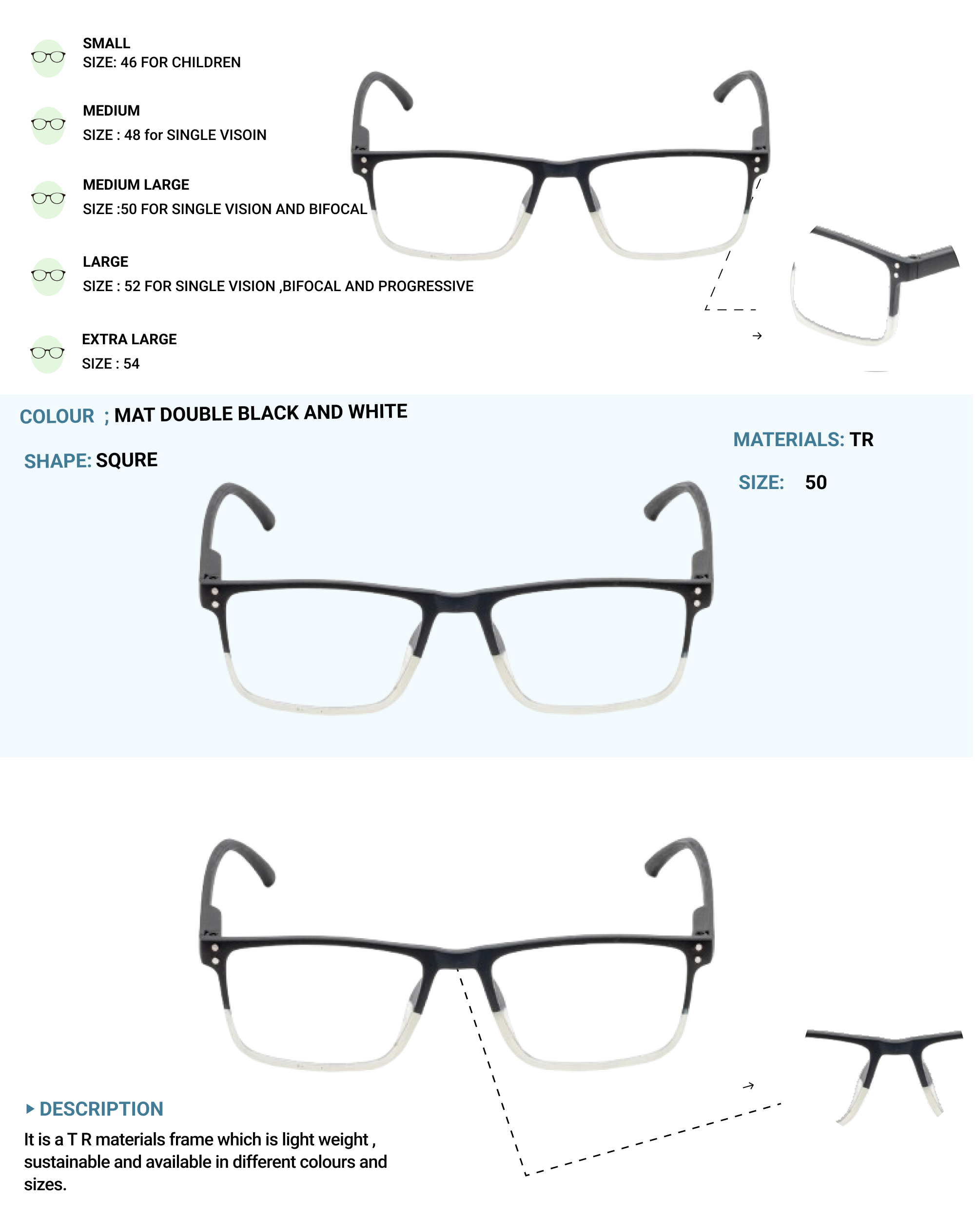 Lensplus ligero square eye frame double black and white