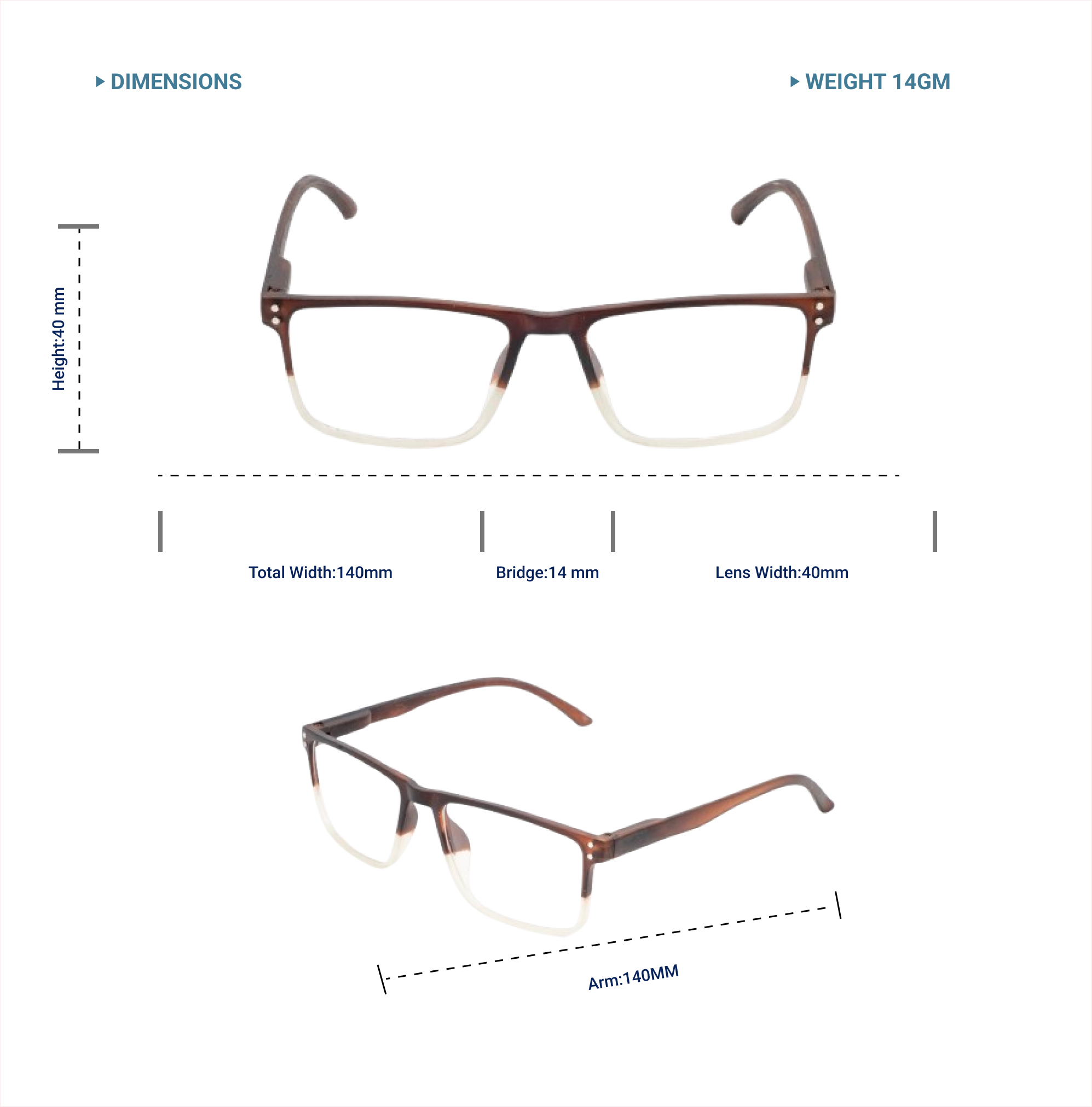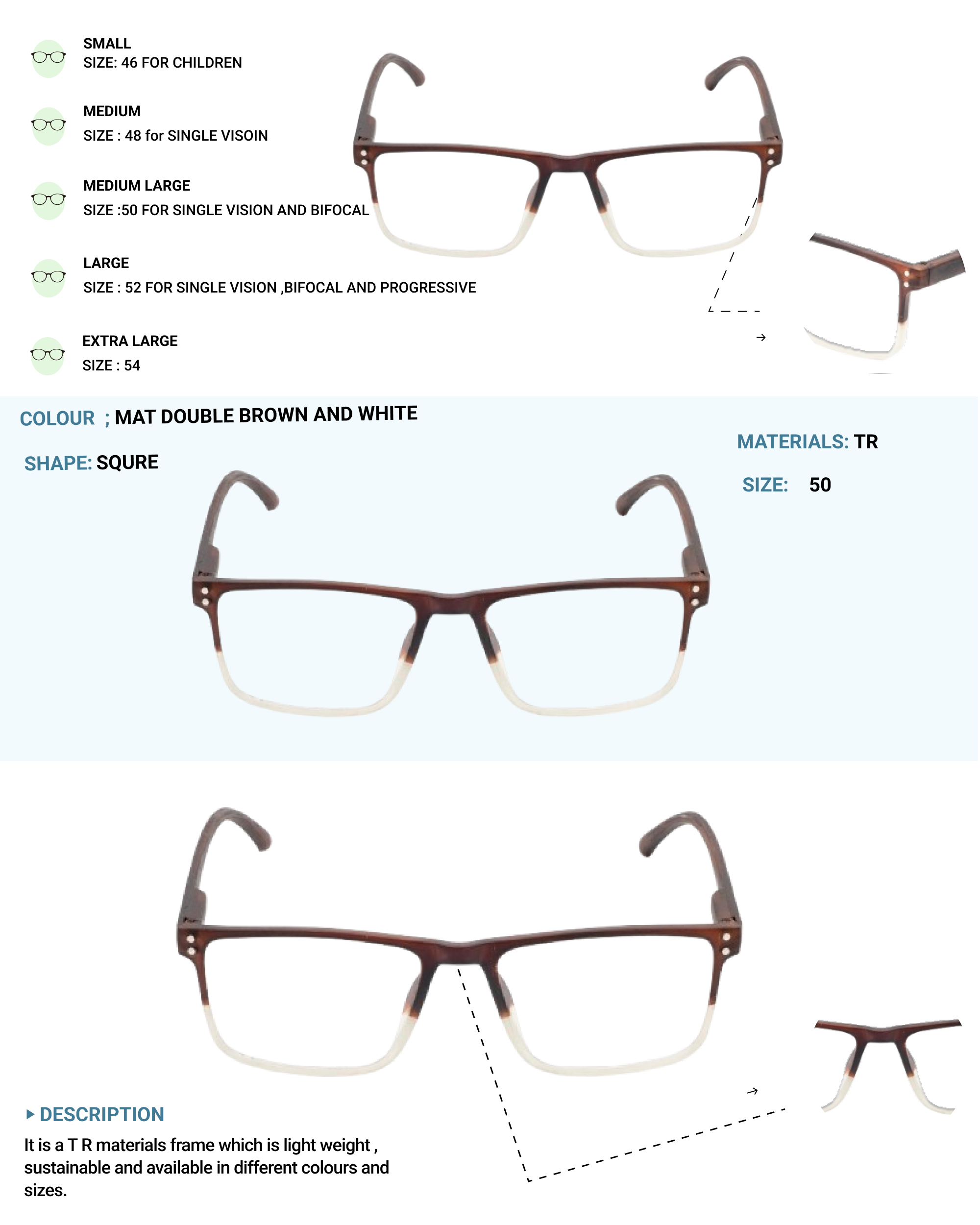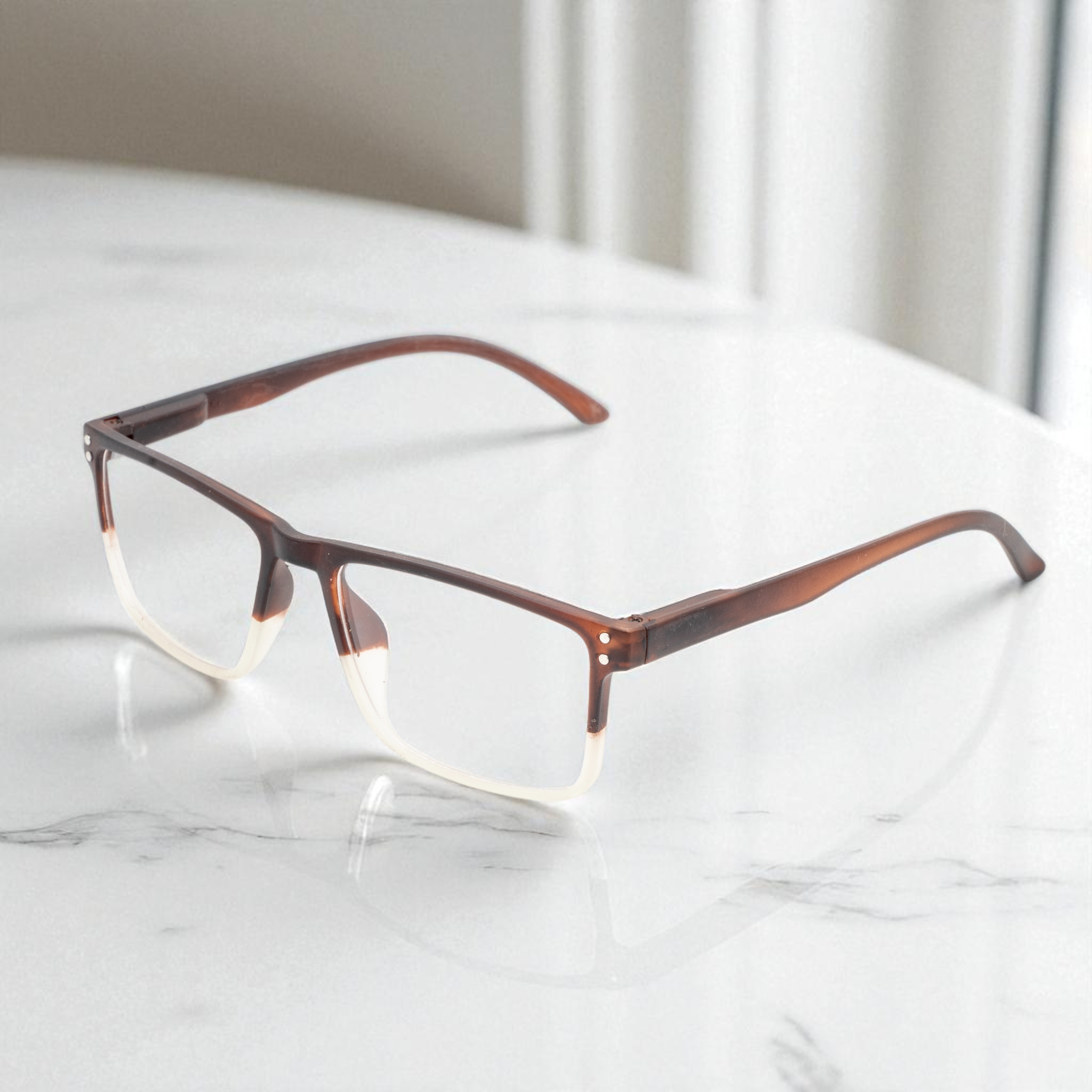 Lensplus ligero square eye frame double brown and white