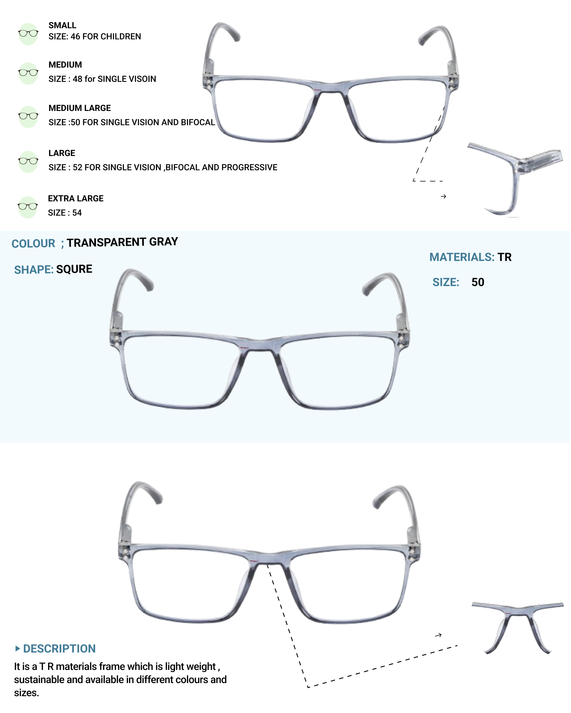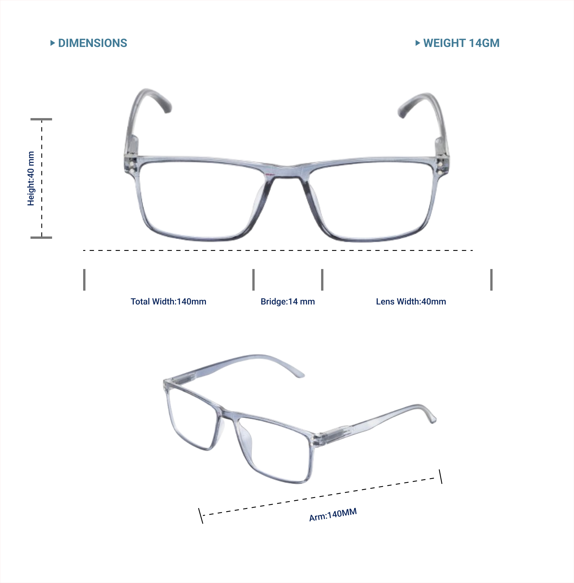 Lensplus ligero square eye frame transparent gray