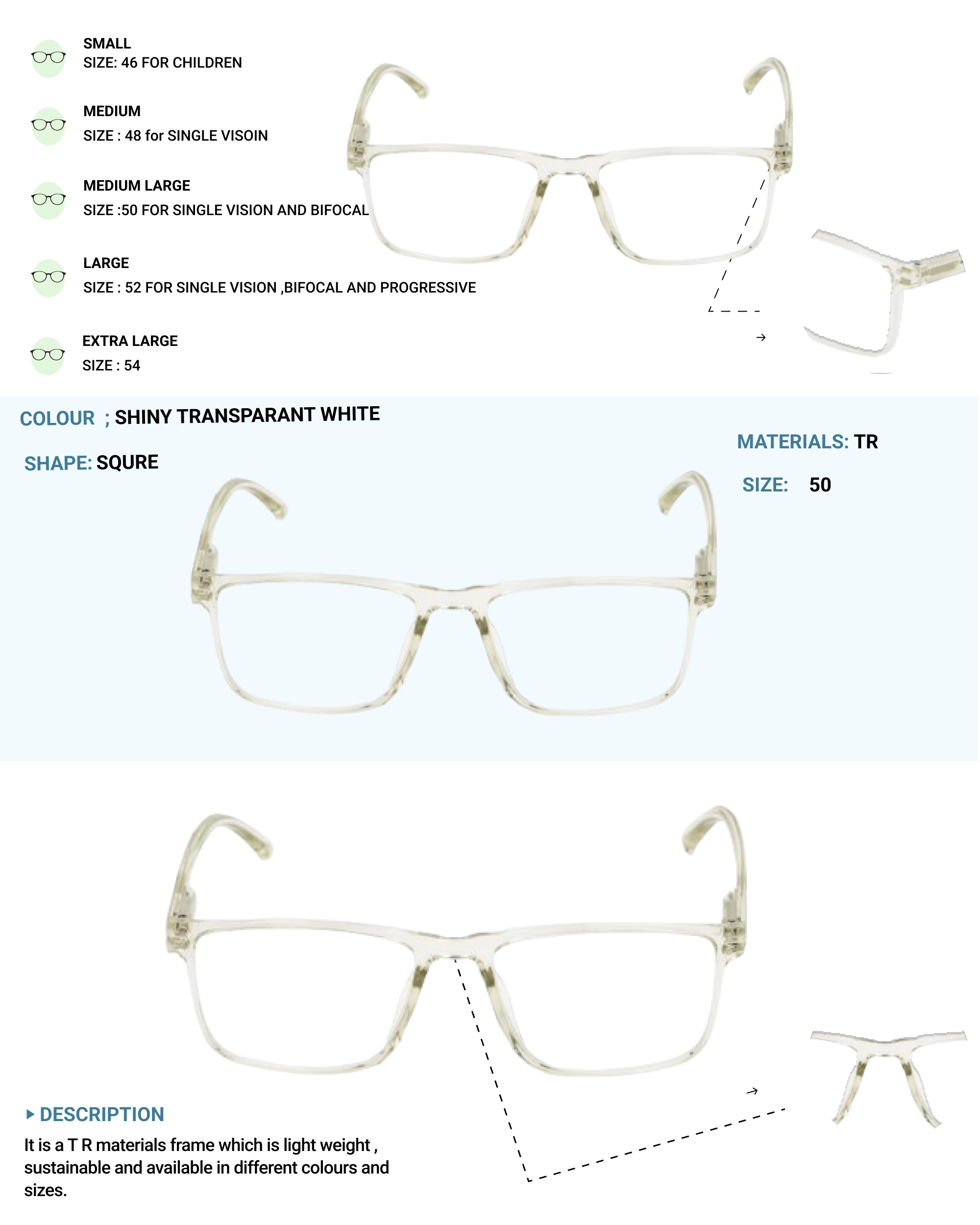 Lensplus ligero square eye frame transparent white
