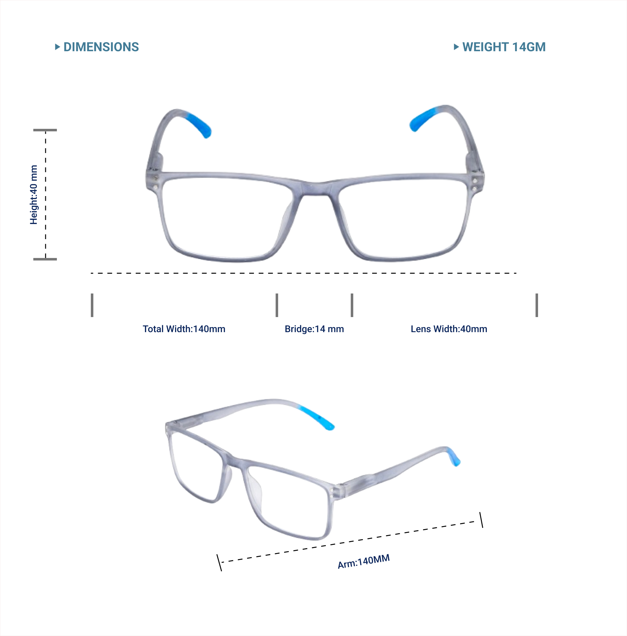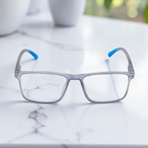 Lensplus ligero square eye frame TRANSPARANT GRAY WITH BLUE TIPS