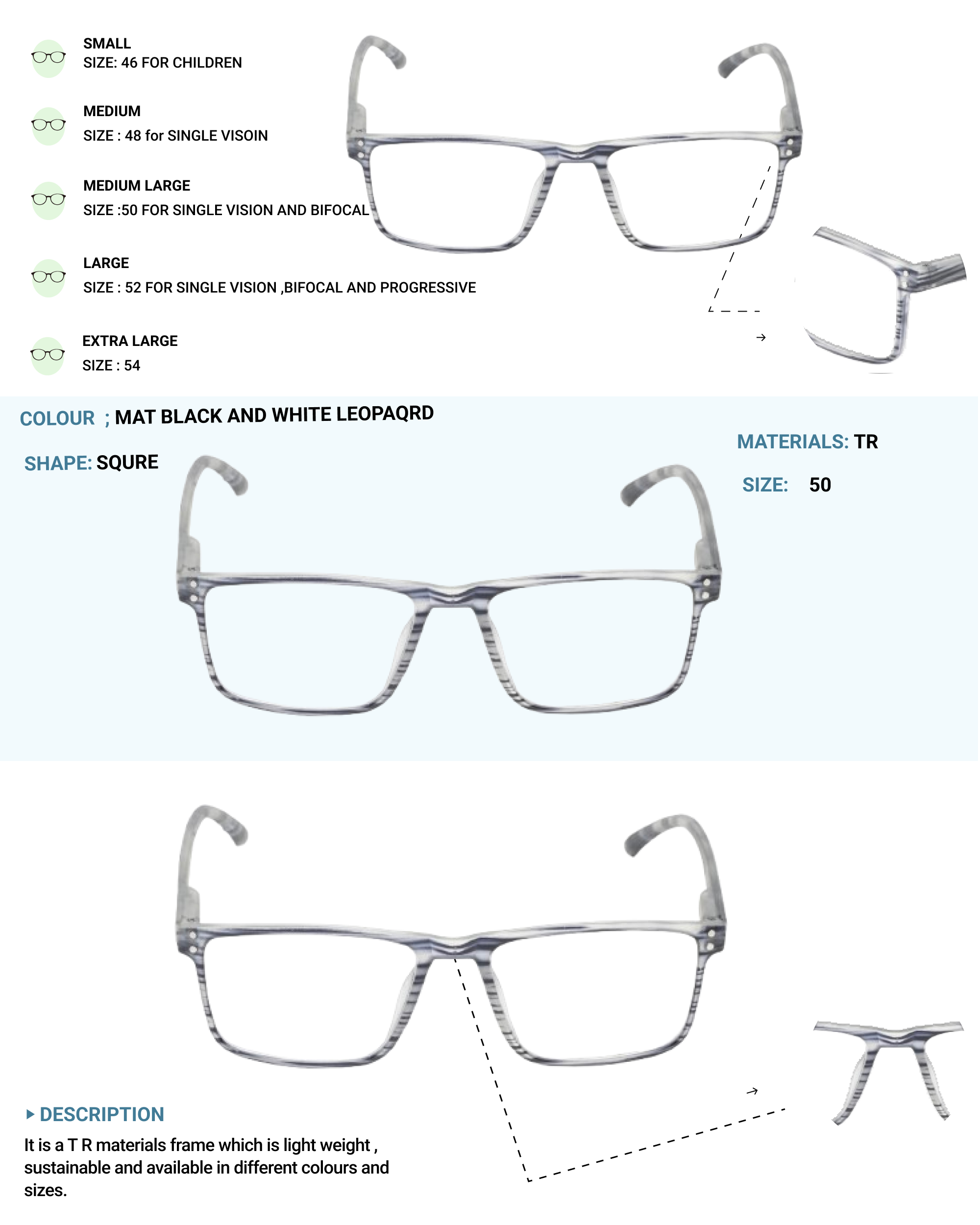 Lensplus ligero square eye frame MAT BLACK AND WHITE LEOPAQRD