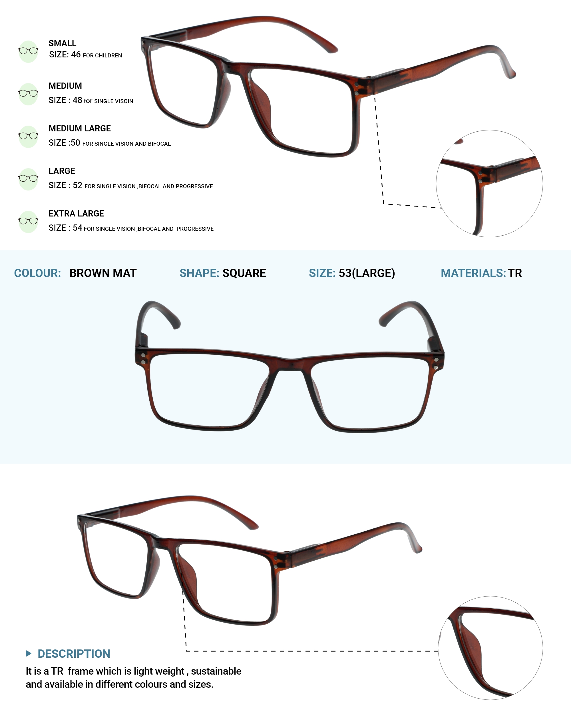 LENS PLUS LIGERO SQUARE EYE FRAME BROWN MAT
