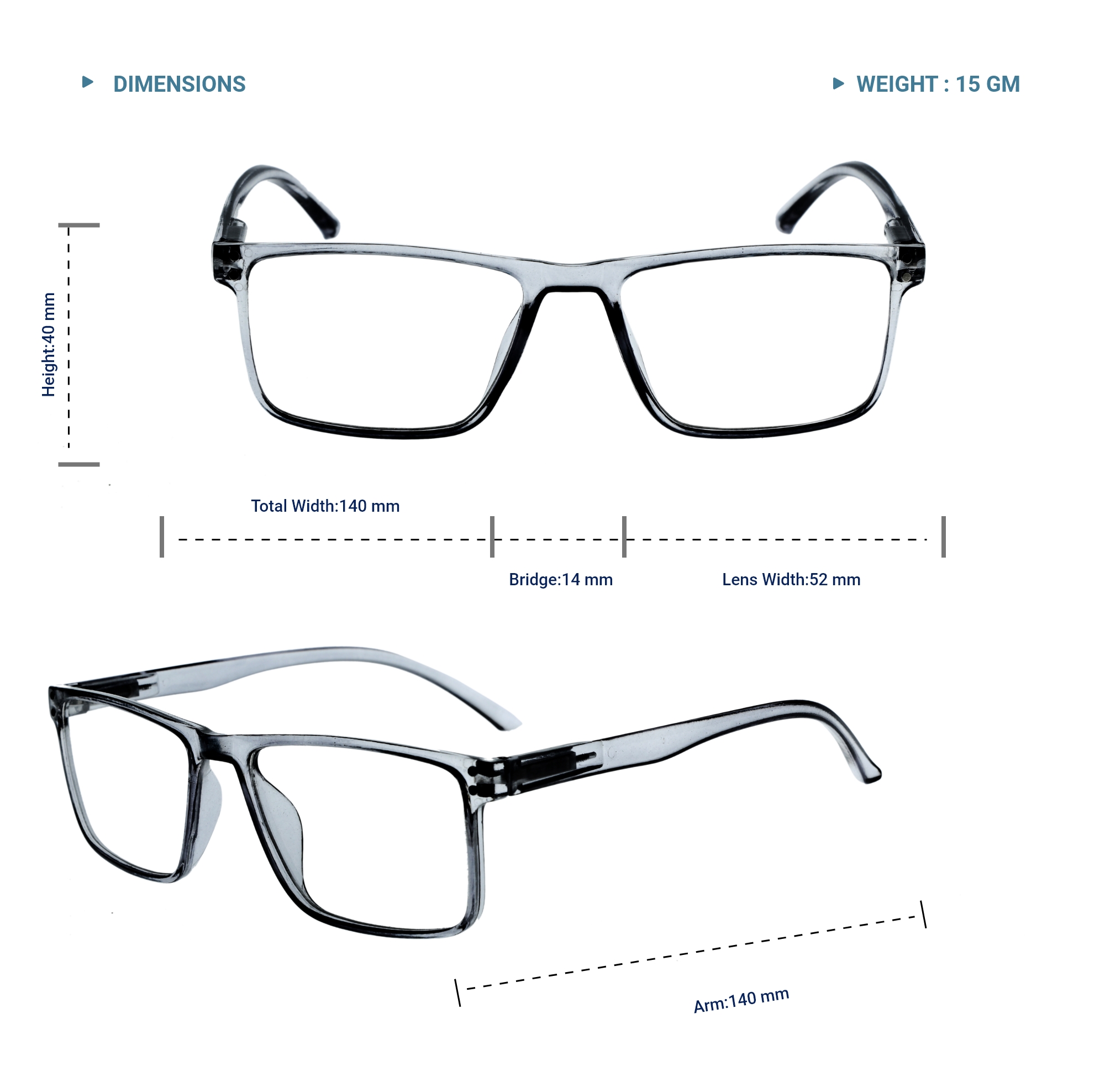 LENS PLUS LIGERO SQUARE EYE FRAME GREY TRANSPARENT